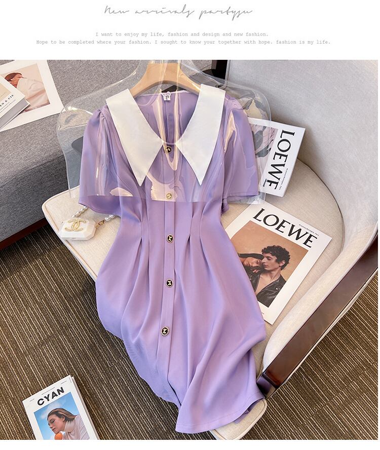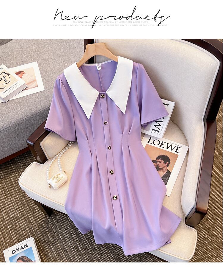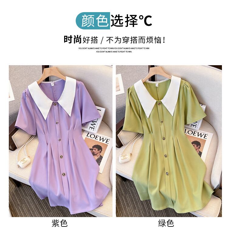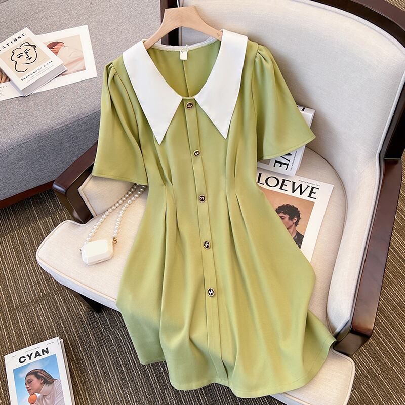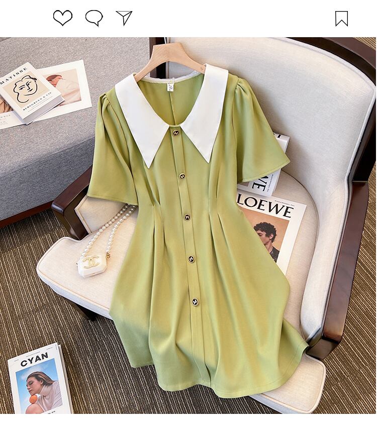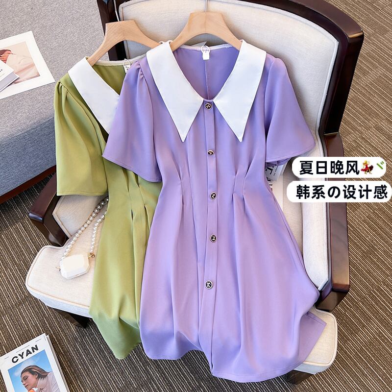 大きいサイズの婦人服 2022 夏の新しいファットシスターフレンチドールの襟の年齢を下げる気質のウエストと薄いドレスの女性 大きめサイズ サマー 夏物 888413085286653