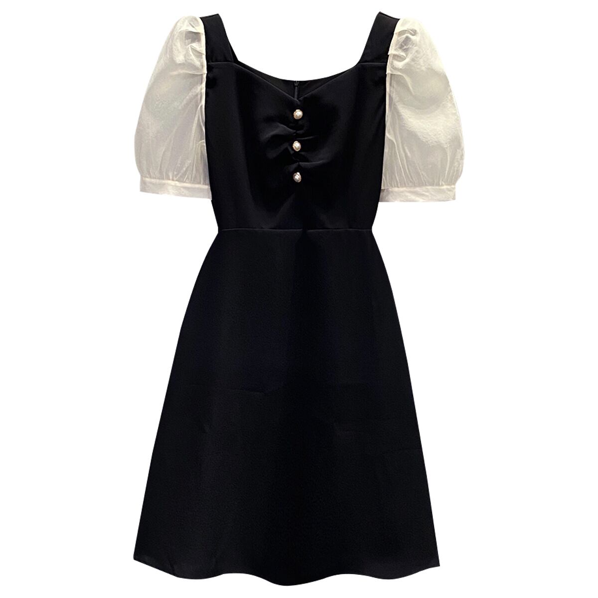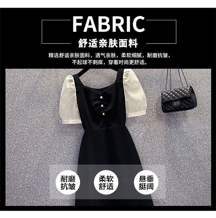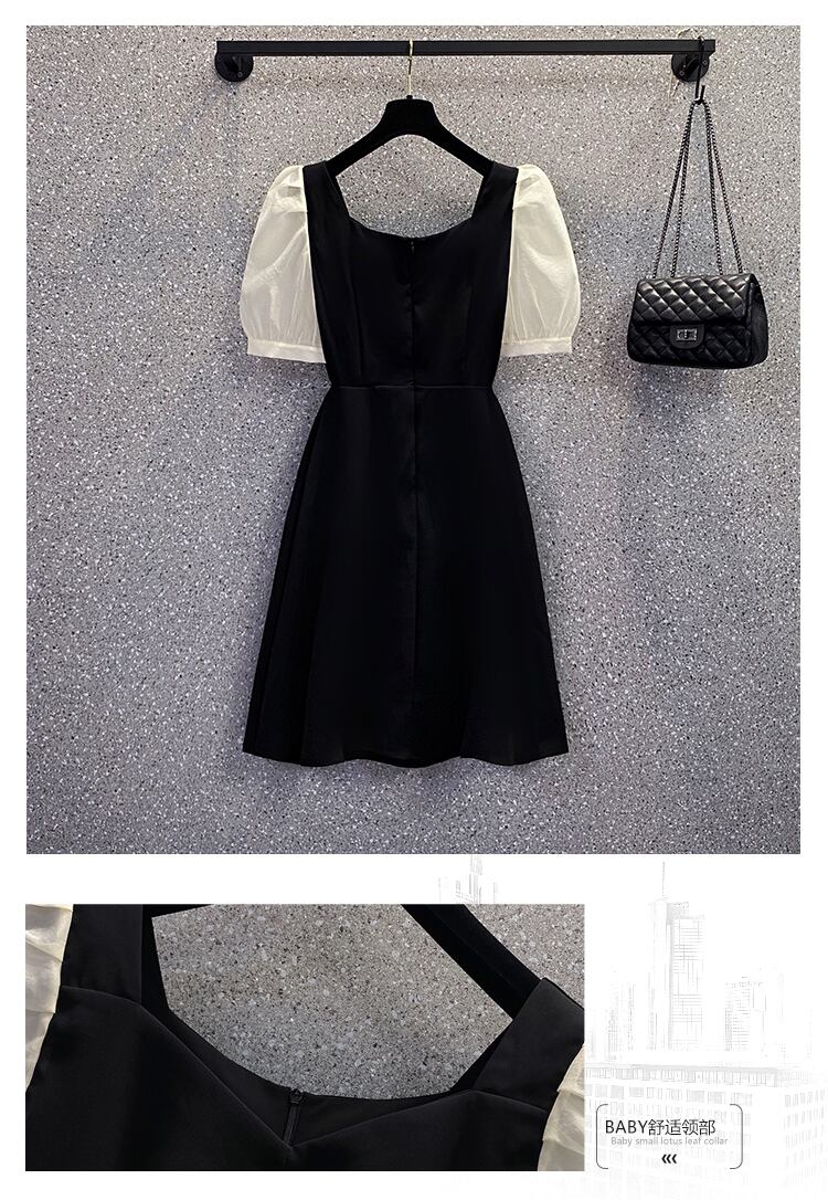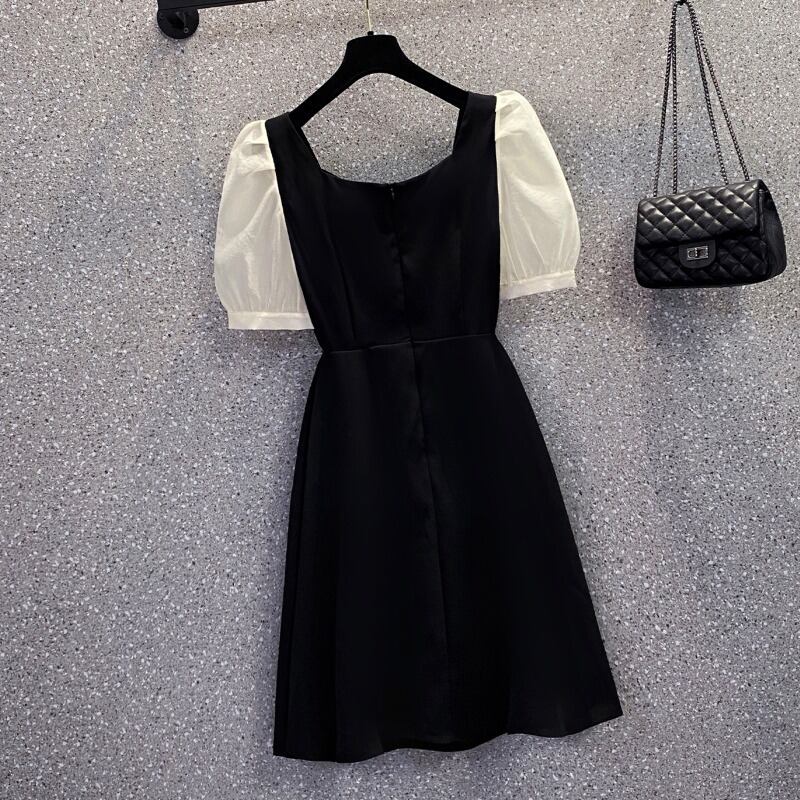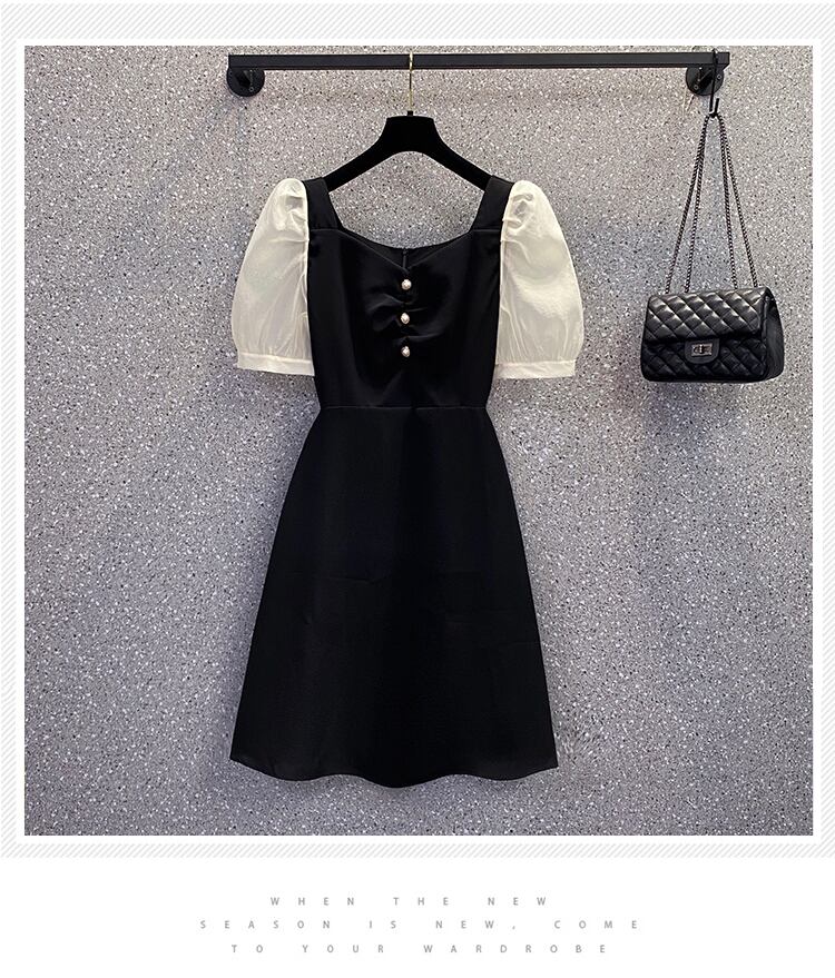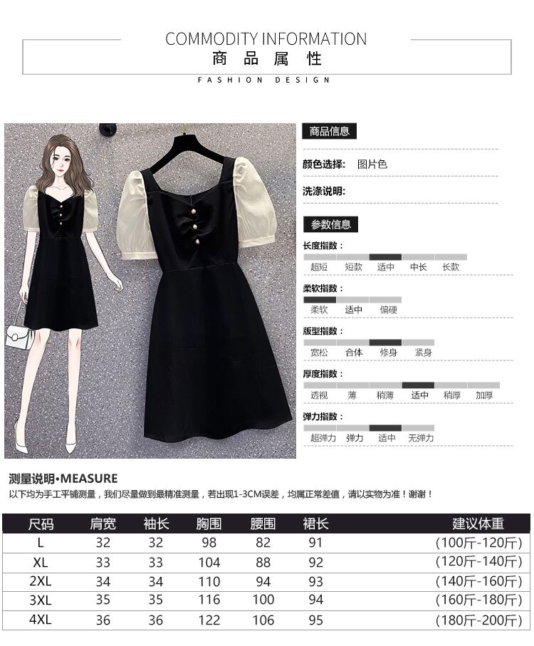 大きいサイズの婦人服 2022 夏の新しいファットシスターフレンチパフスリーブウエストと薄いステッチカジュアルドレスの女性 大きめサイズ サマー 夏物 8884143570444052
