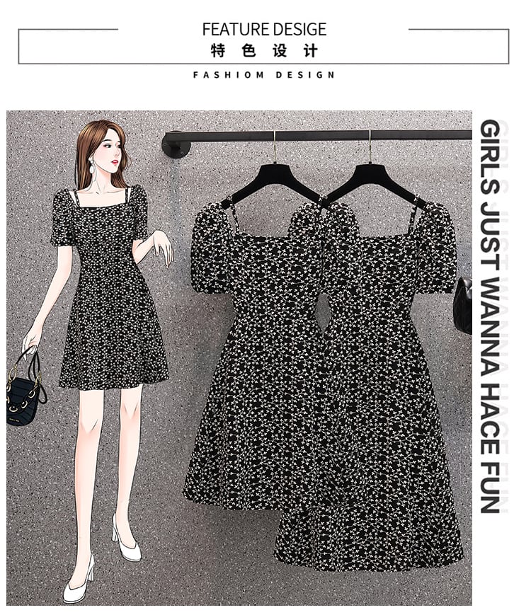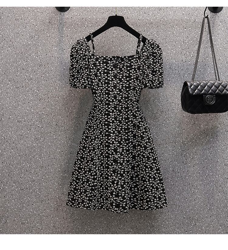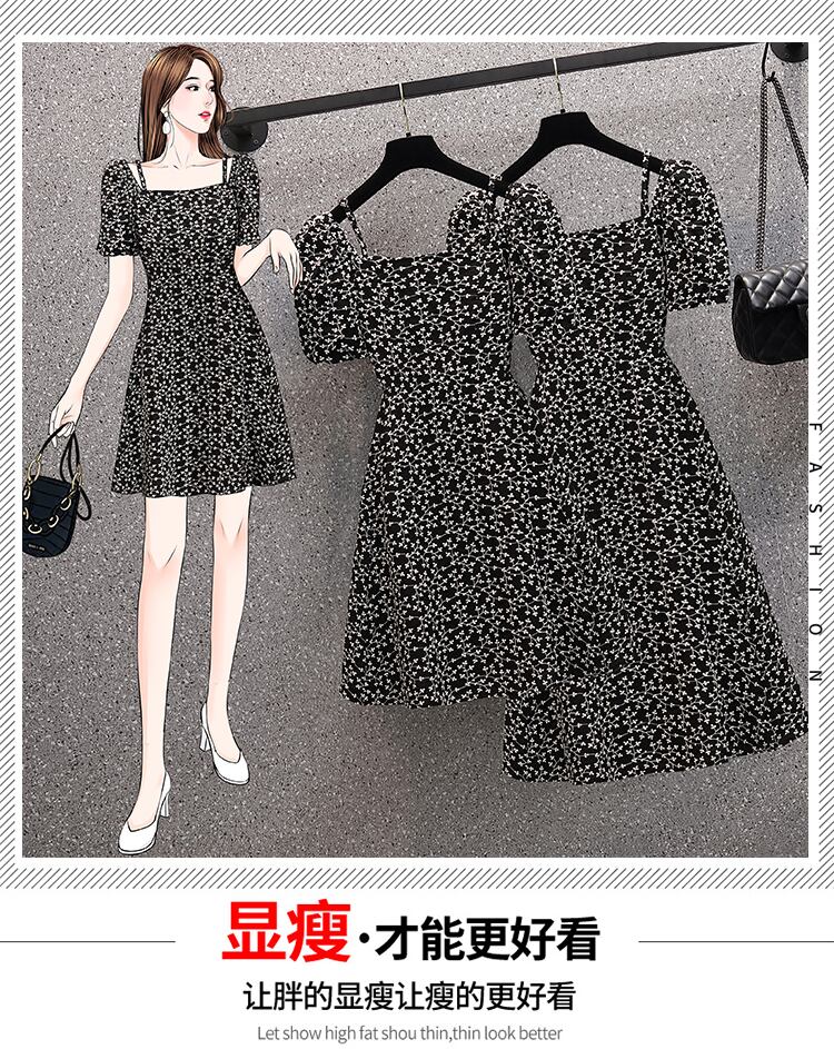 大きいサイズの婦人服 2022 ファットシスター夏の新しいファッションスクエアカラー刺繍 A ラインスカートウエストスリムドレス レッド 大きめサイズ サマー 夏物 Aライン スクウェア 8884155740508230