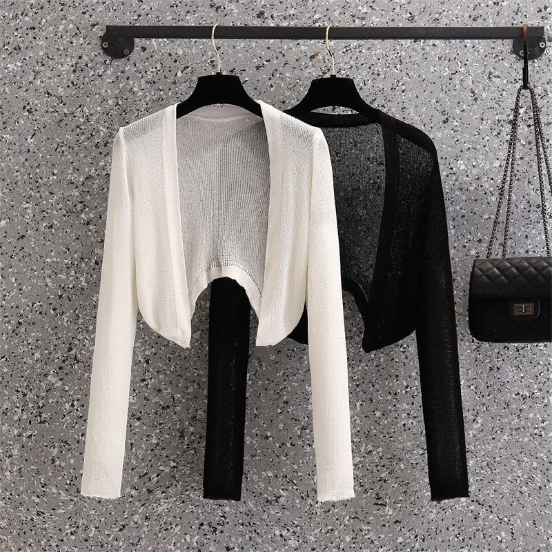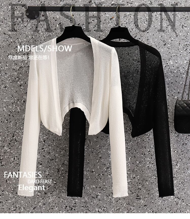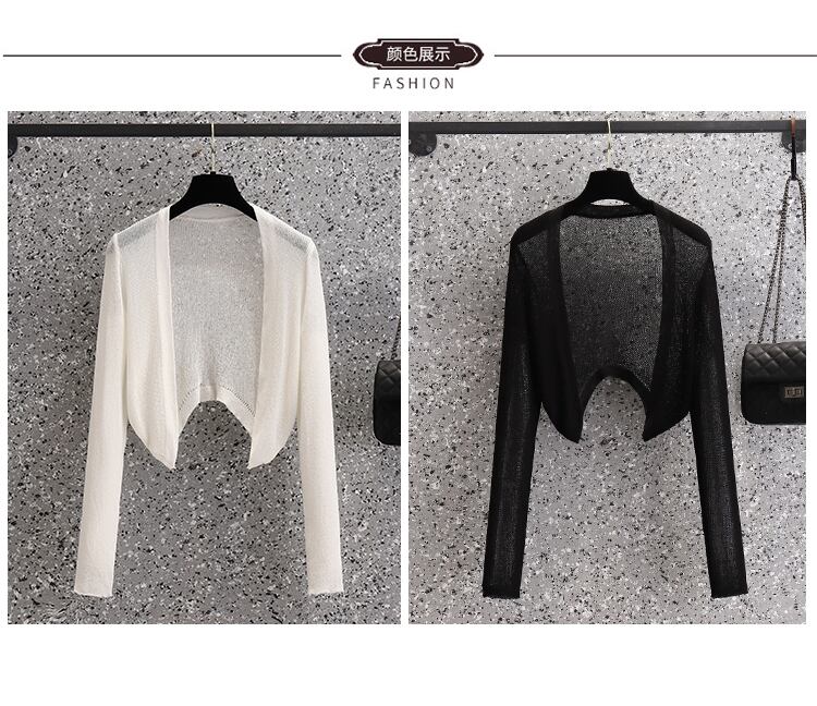 大きいサイズの婦人服 2022 ファットシスター夏新アイスシルクニットセーターショートカーディガン付き日焼け止めショールジャケット 大きめサイズ サマー 夏物 8884199388357057