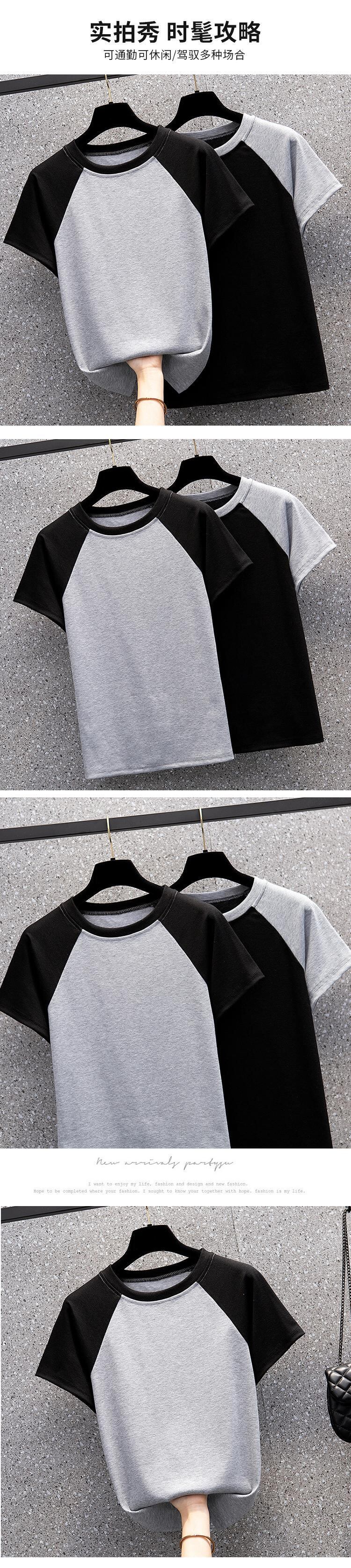 大きいサイズの婦人服 2022 トレンディな女性の夏の新しいファットシスター洋風配色ファッションオールマッチルーズで薄い半袖 Tシャツ 大きめサイズ サマー 夏物 8884143870916495