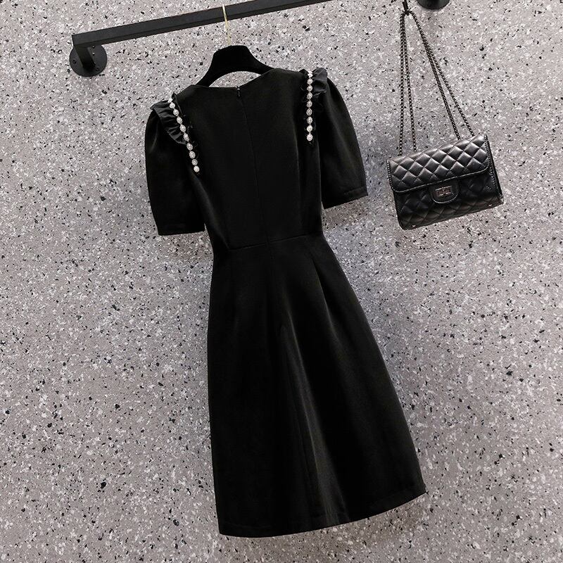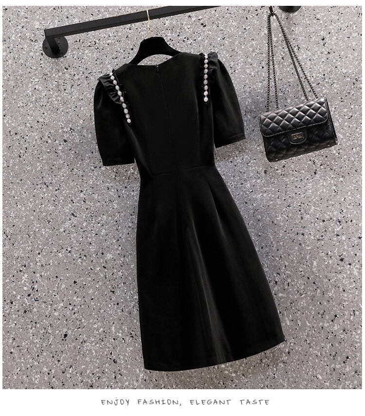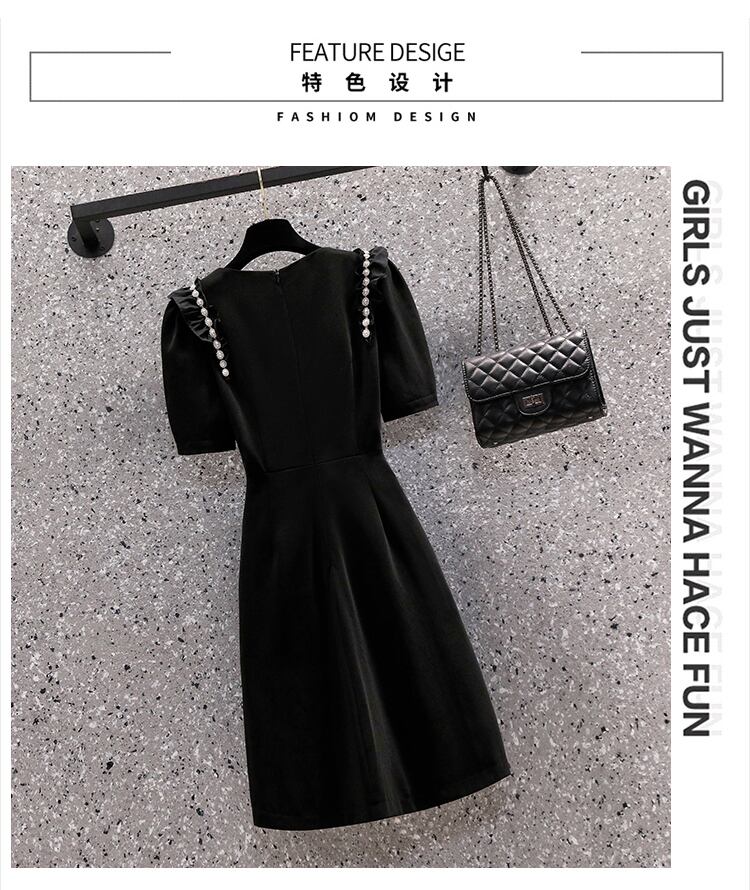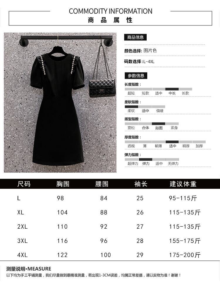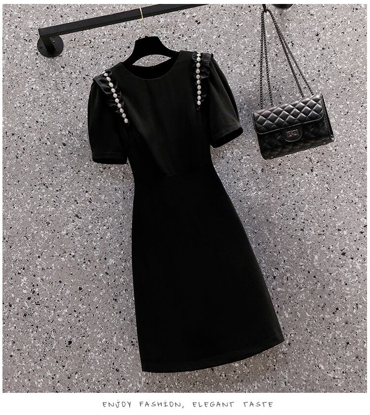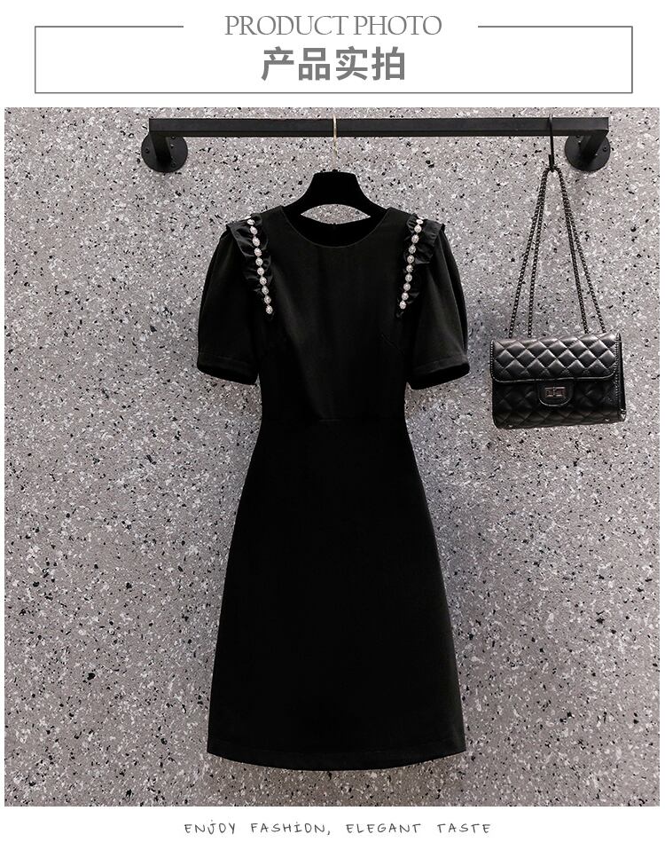 大サイズの婦人服 2022 夏新ファットシスターカバーベリーラウンドネック半袖ウエストヘップバーンスタイル無地ドレス女性 ショート ハーフスリーブ 大きめサイズ サマー 夏物 Oネック ソリッドカラー 8884125667881418