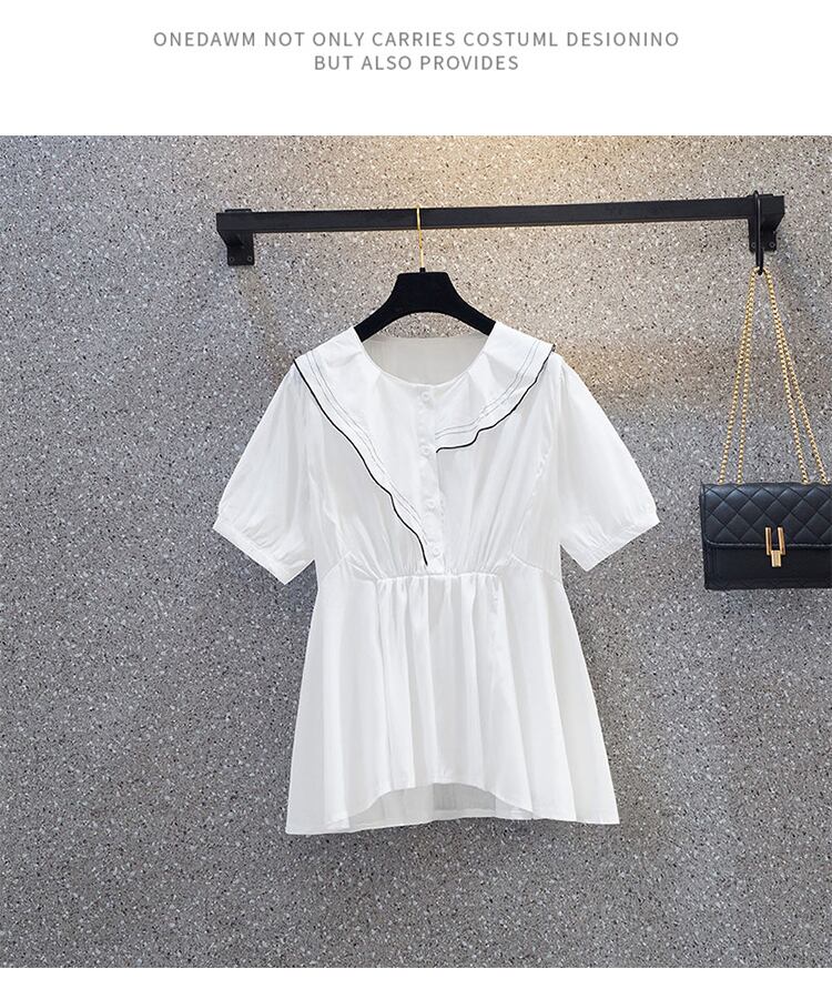 大きいサイズの婦人服 2022 トレンディな女性の夏の新しいファット シスター ウエスタン スタイル ゆったり カバー腹薄いストラップ半袖シフォン シャツ 大きめサイズ サマー 夏物 8884197619922485
