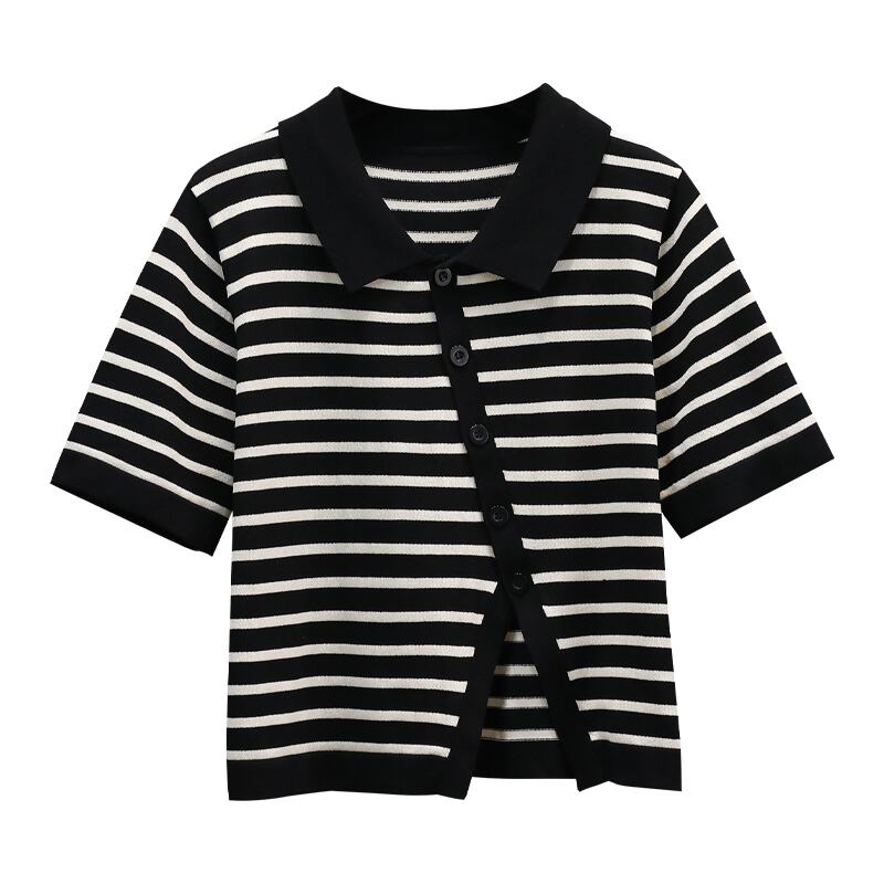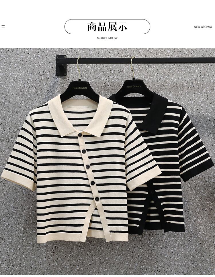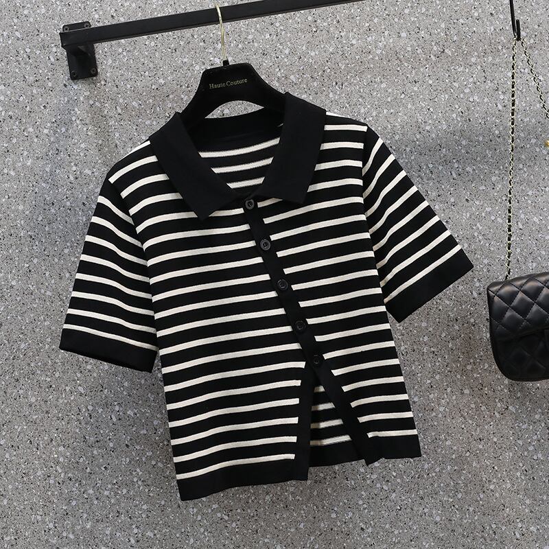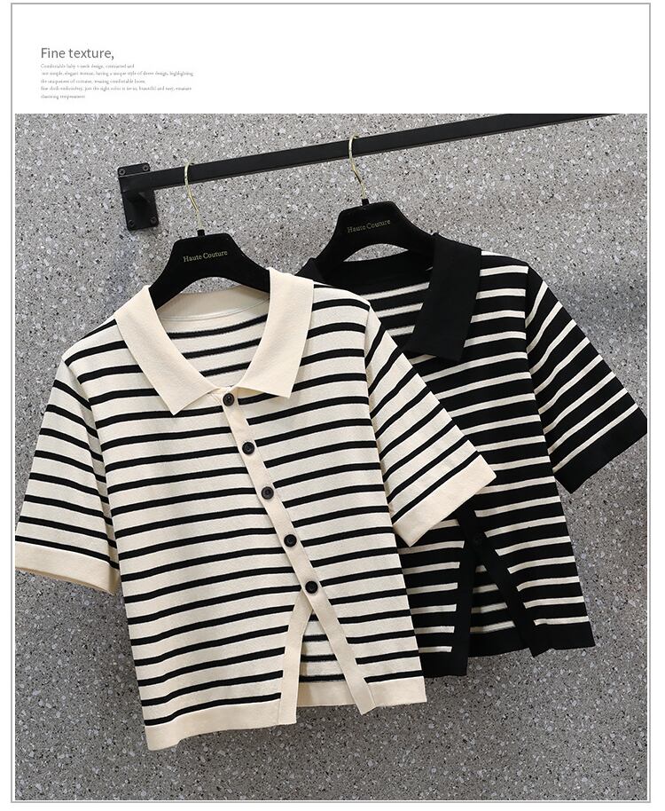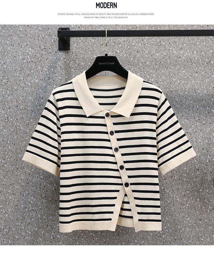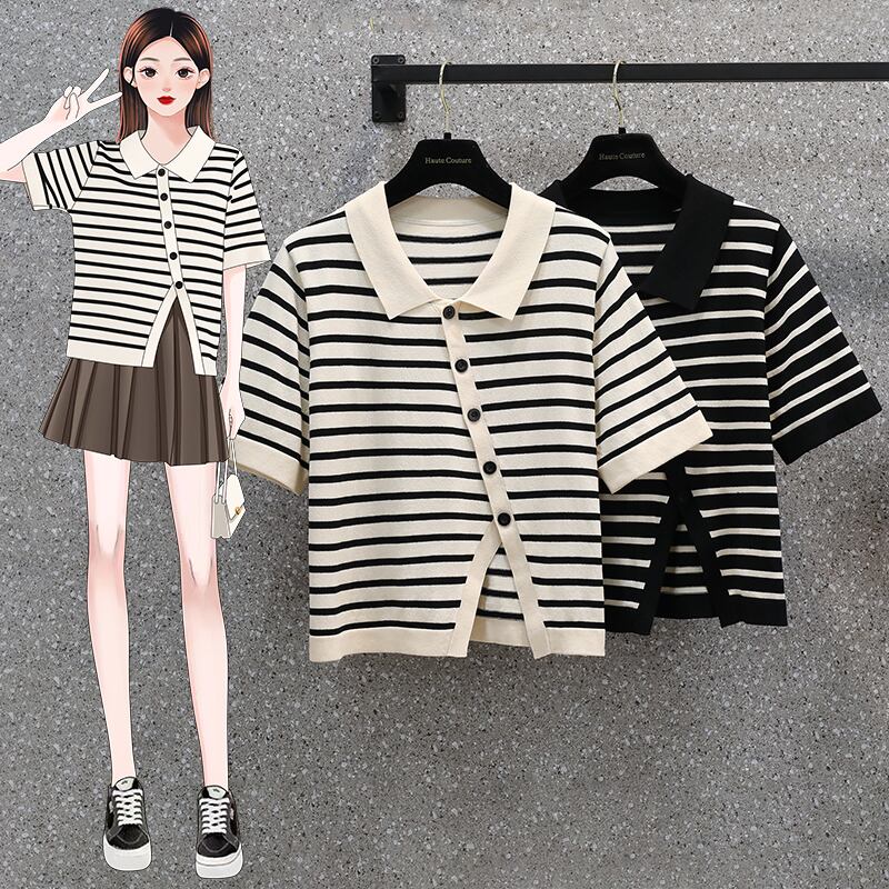 大きいサイズの婦人服 2022 夏の新しい脂肪姉妹ポロ襟不規則なスリット斜め胸ボタン デザイン tシャツ女性 大きめサイズ サマー 夏物 8884126349837313