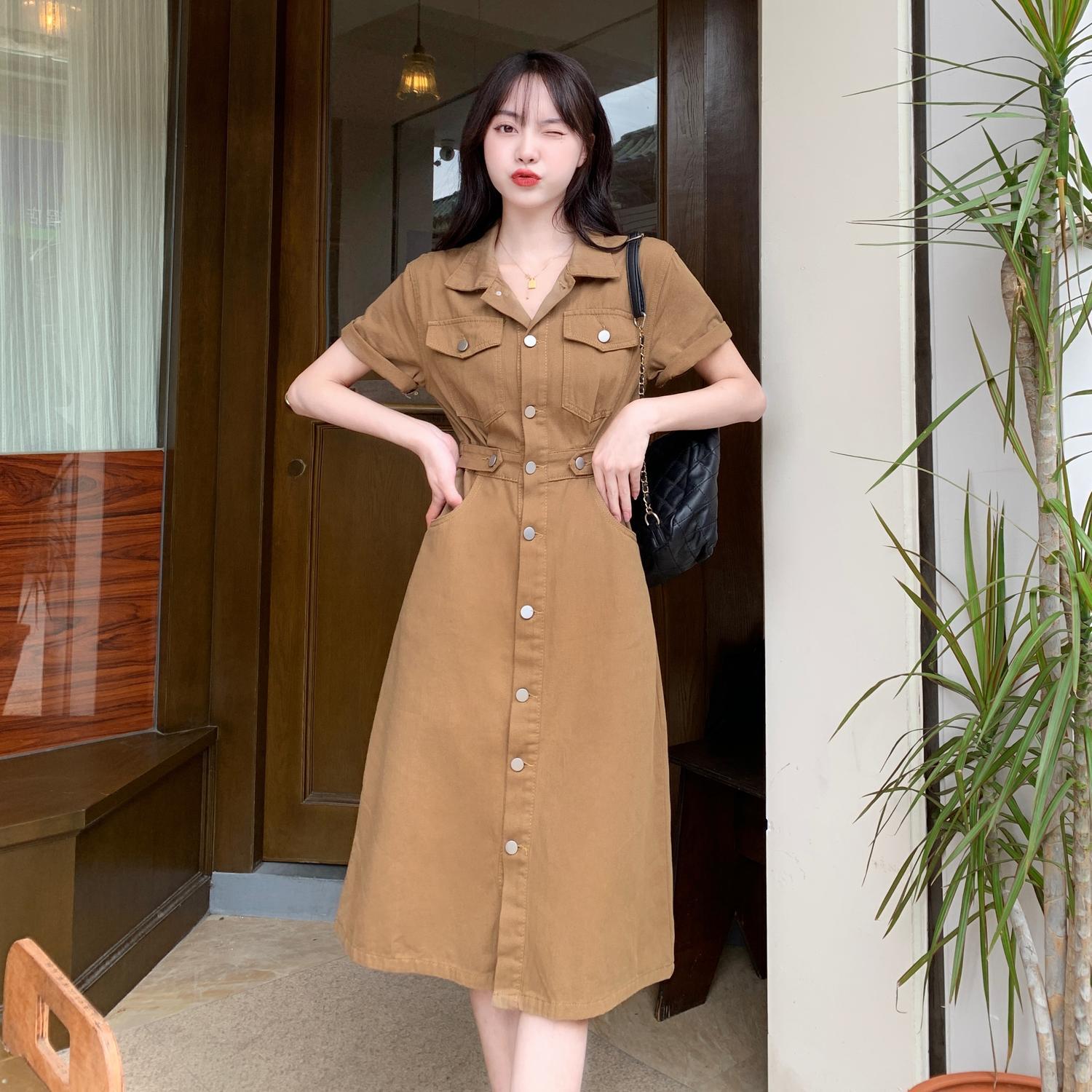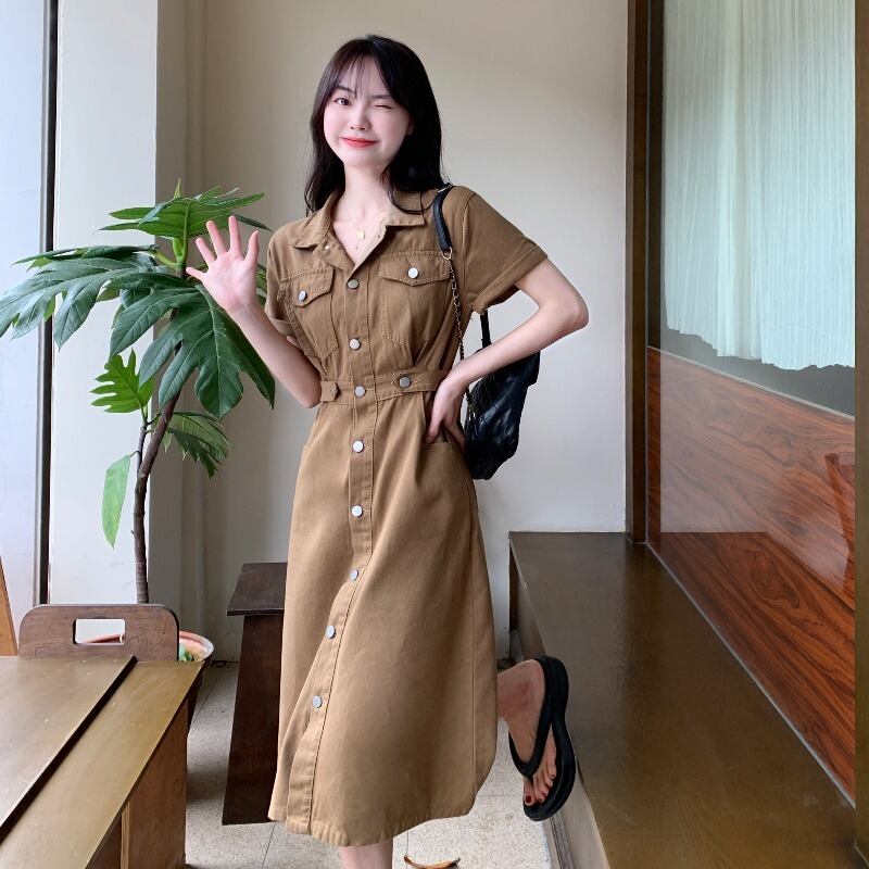 大きいサイズの婦人服2022流行の女性の夏の新しいファットシスターのウエストは薄くてファッショナブルな西洋風の年齢を減らすデニムのドレス 大きめサイズ サマー 夏物 8884137183272904