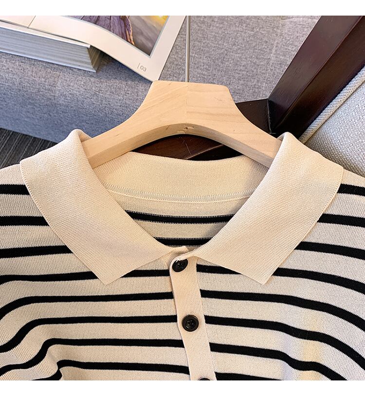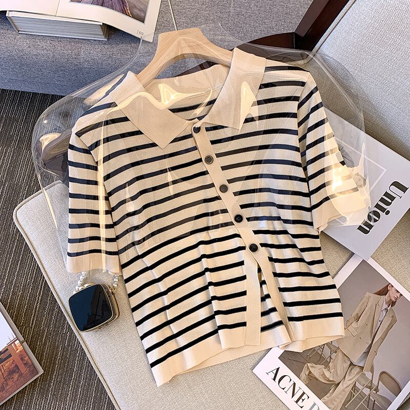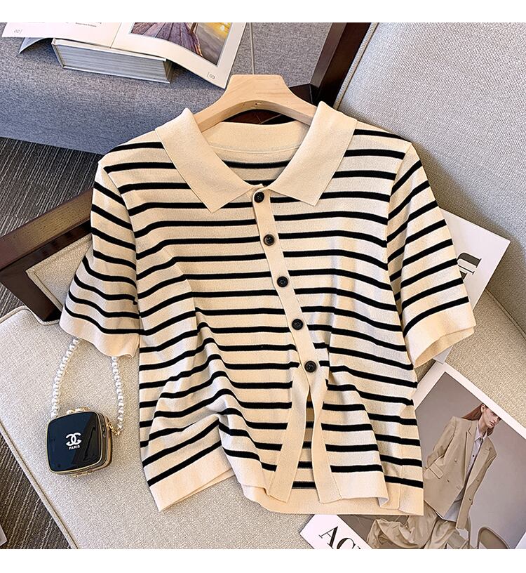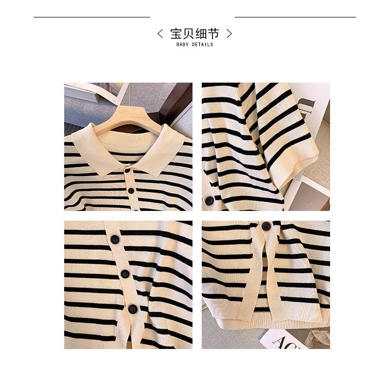 大きいサイズの婦人服 2022 ファットシスター夏の新ファッショントップストライプの薄いラペル半袖シャツ tシャツ女性 大きめサイズ サマー 夏物 888419398081758