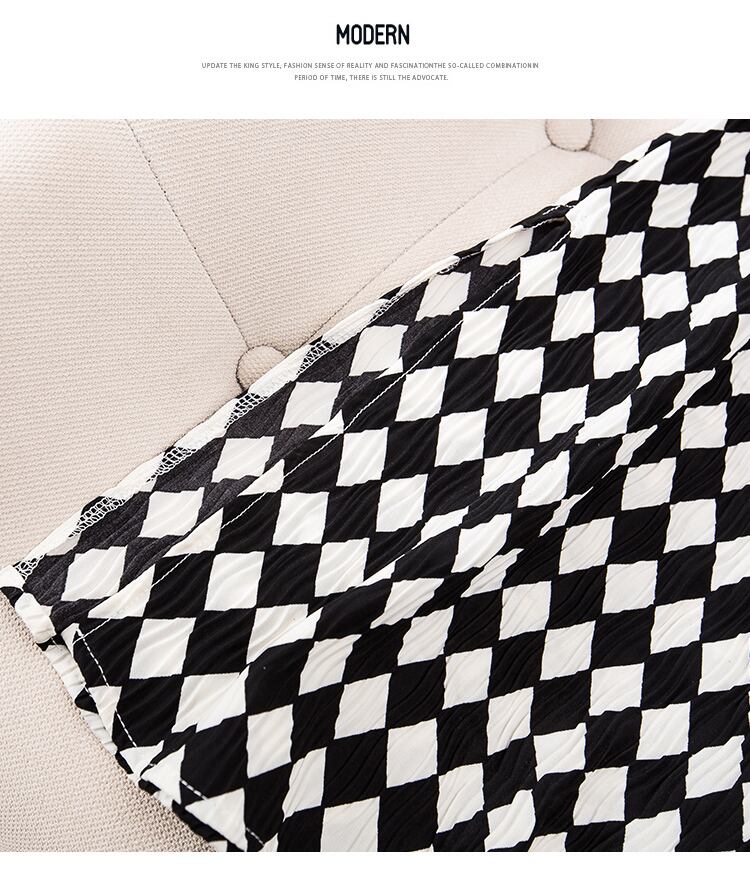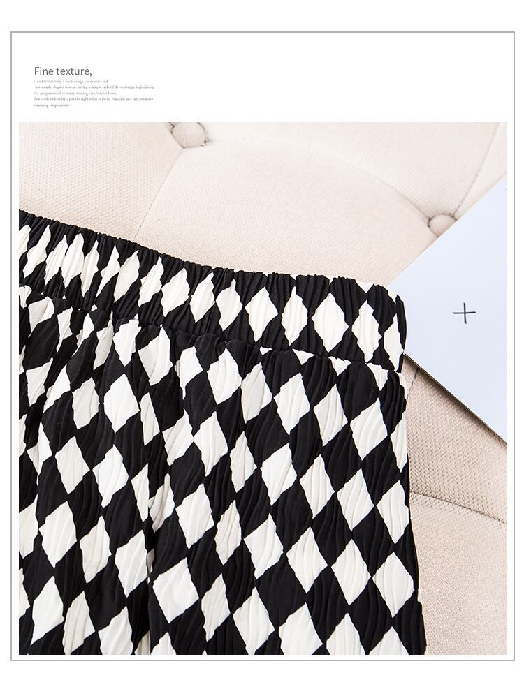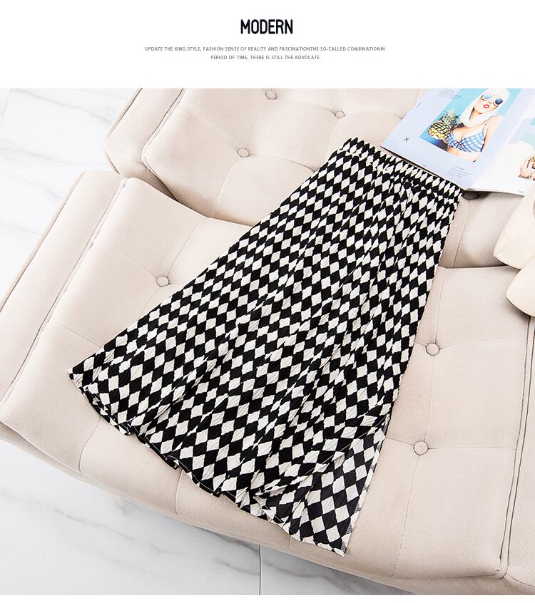 大きいサイズの婦人服2022ファットシスター夏の新しいカジュアルルーズロング白黒ダイヤモンド裾スリットスカート ホワイト ブラック 大きめサイズ サマー 夏物 8884197353917086