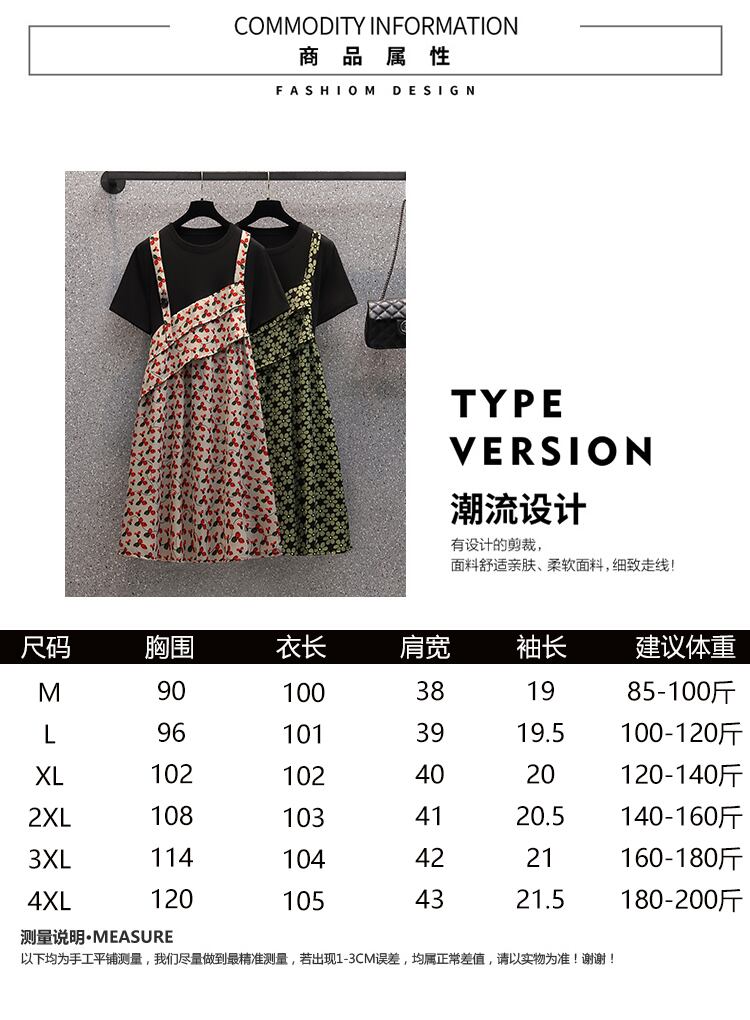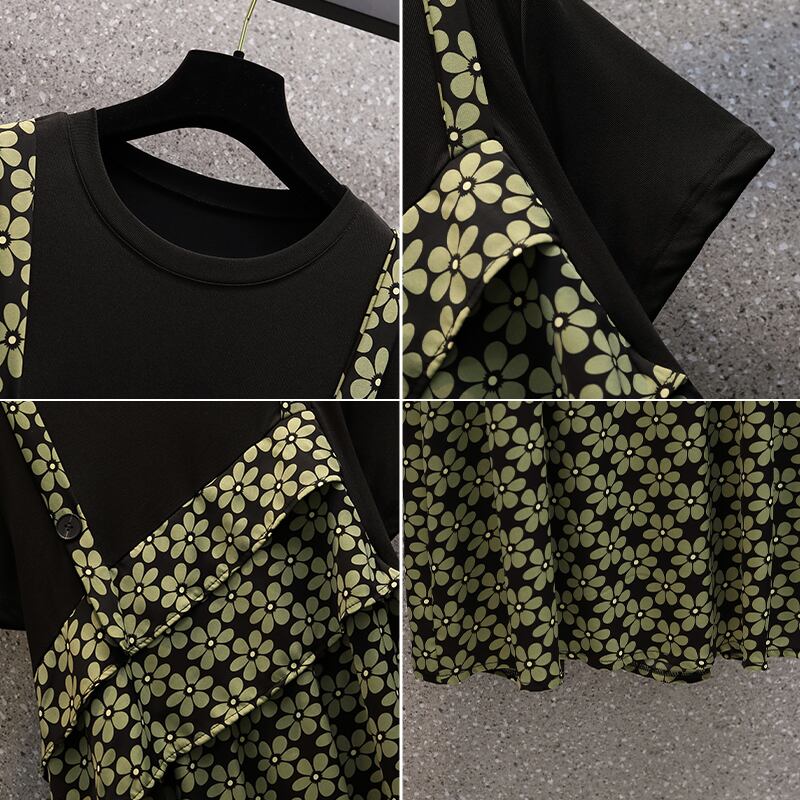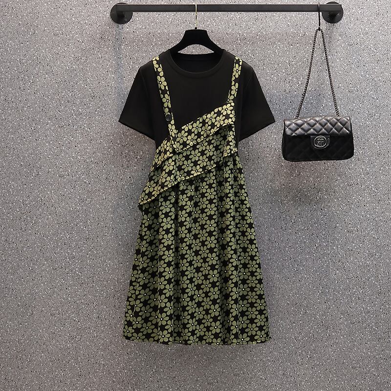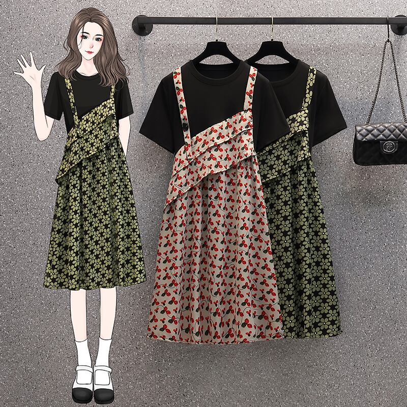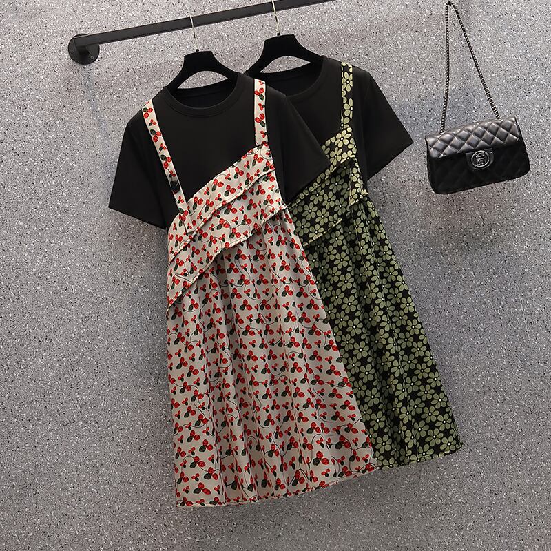 大きいサイズの婦人服 2022 太った姉妹の夏の新しいフランスの気質の偽物 2 ルースと薄い花柄のドレス 大きめサイズ サマー 夏物 8884117988184154