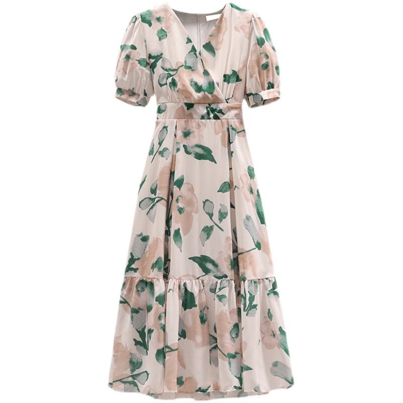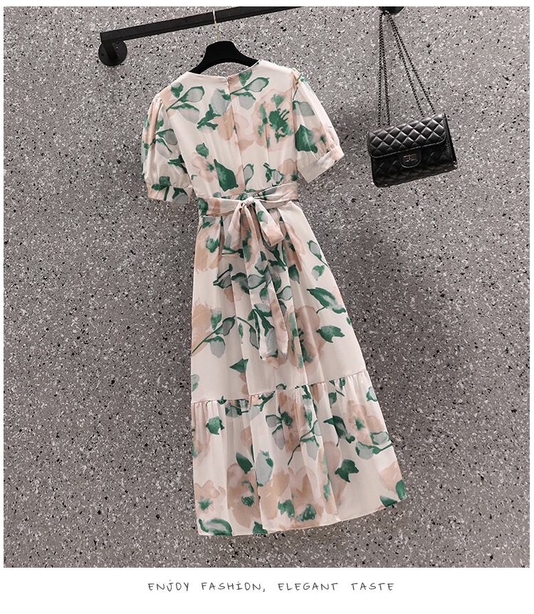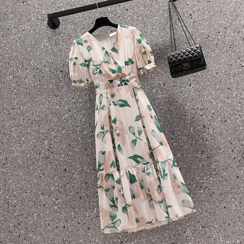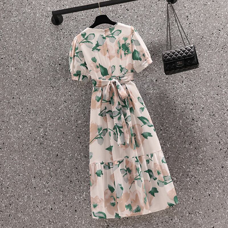大きいサイズの婦人服 2022 夏の新しい太った姉妹フレンチ ウエストと薄い気質花柄ベリー カバー カジュアル ドレス 大きめサイズ サマー 夏物 8884174068573079