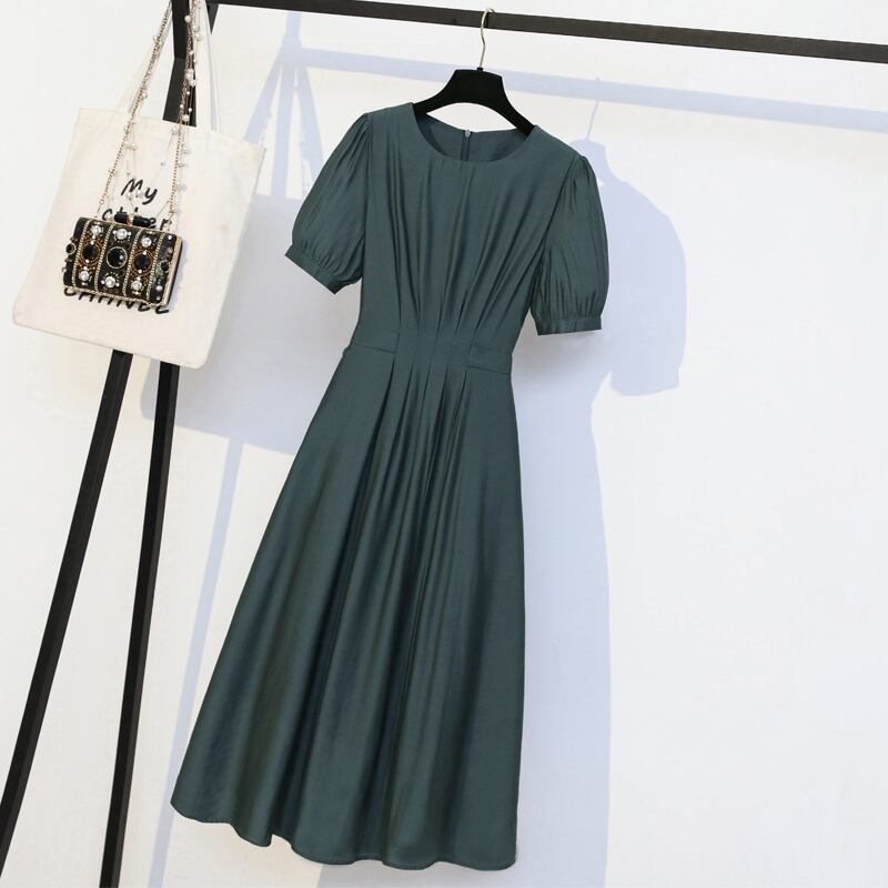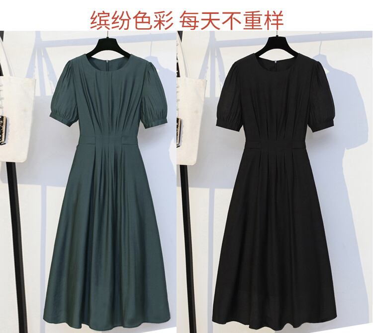 大サイズの婦人服 2022 夏の新脂肪姉妹ファッション気質ウエスト無地ニッチデザインドレス女性 大きめサイズ サマー 夏物 ソリッドカラー 8884134655298524
