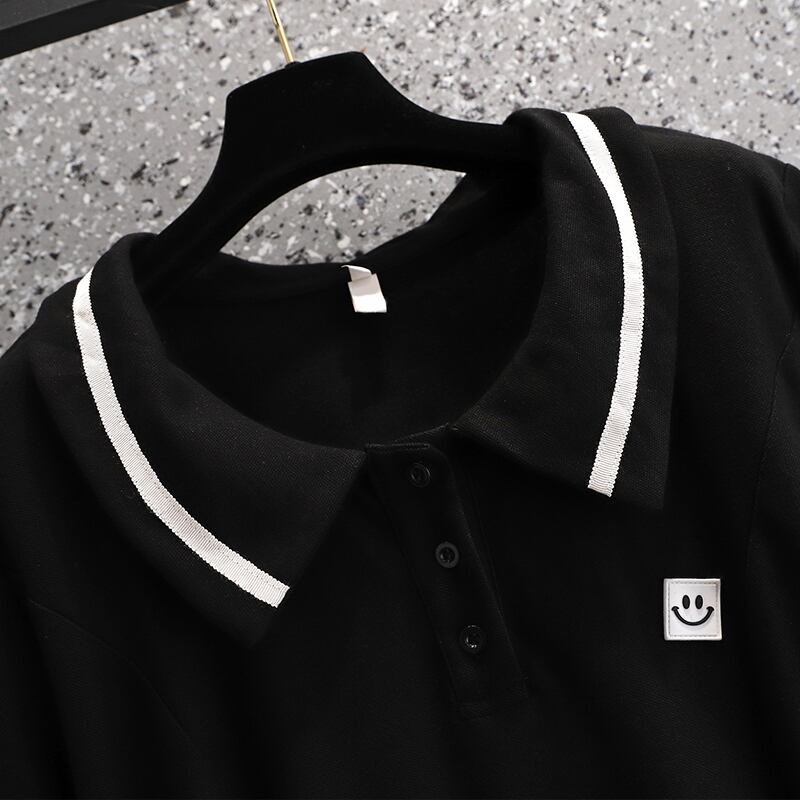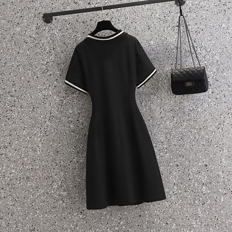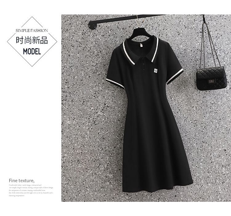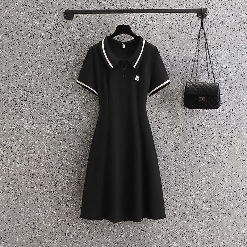 プラスサイズの婦人服 2022 ファットシスター夏の新気質 a ラインスカートカジュアルスリムポロ襟半袖ドレス 大きめサイズ サマー 夏物 Aライン 888414461965232