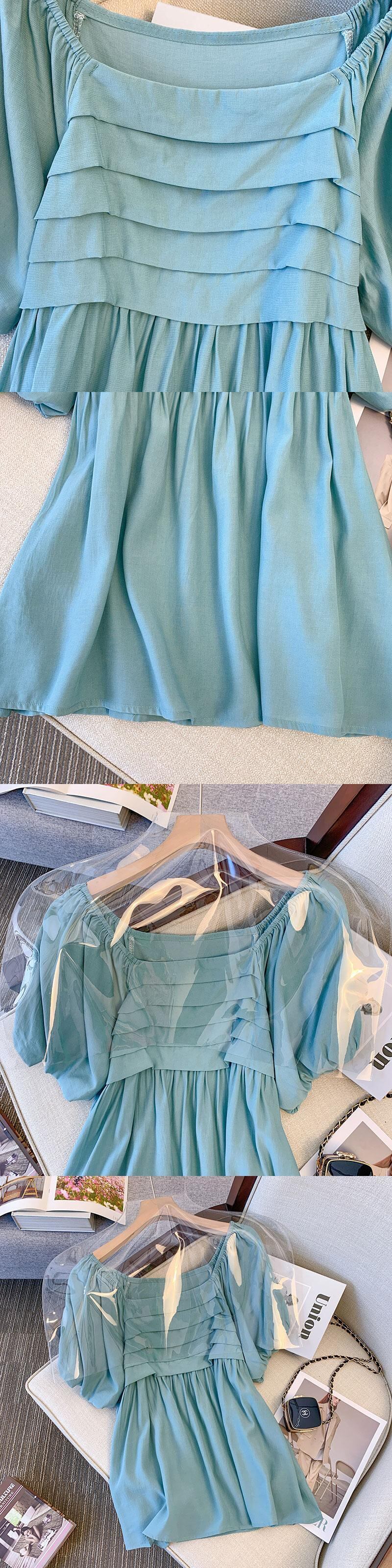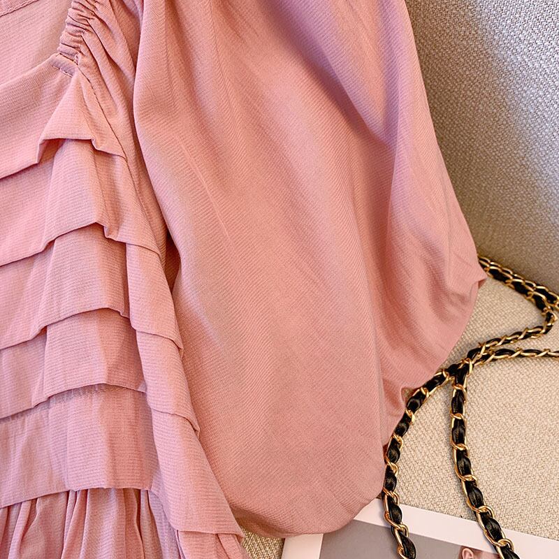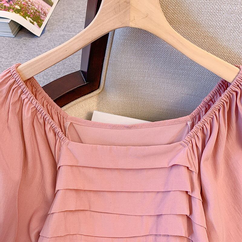 大サイズの女性の 2022 ファットシスター夏の新しいフレンチワンショルダープリーツバブル半袖痩身シャツ 大きめサイズ サマー 夏物 8884146007973914