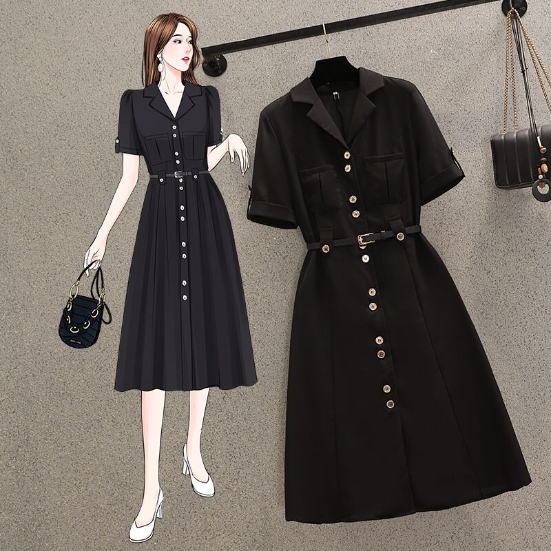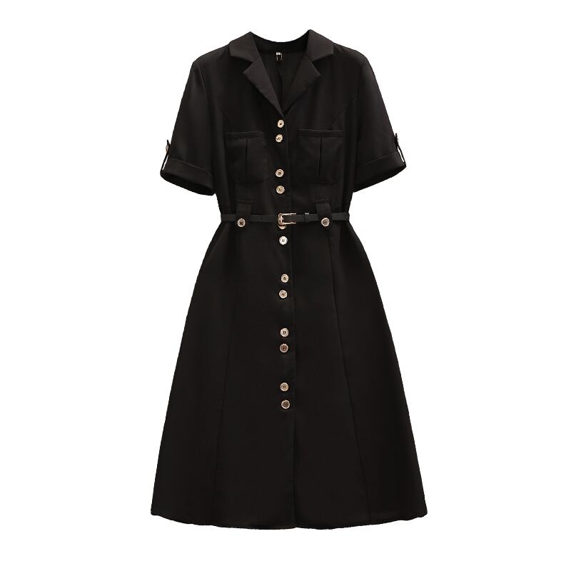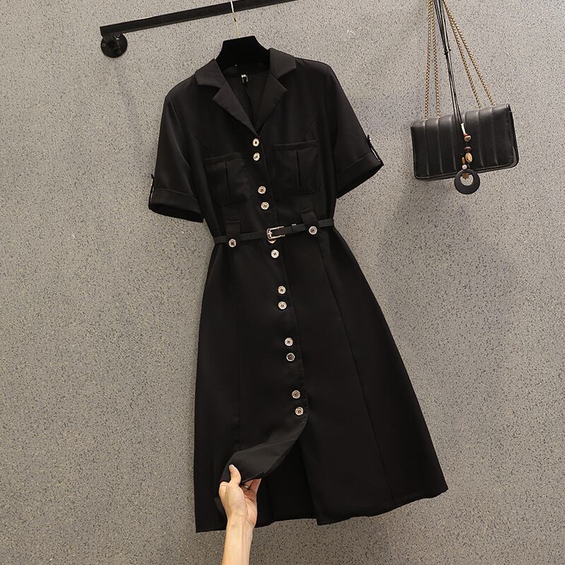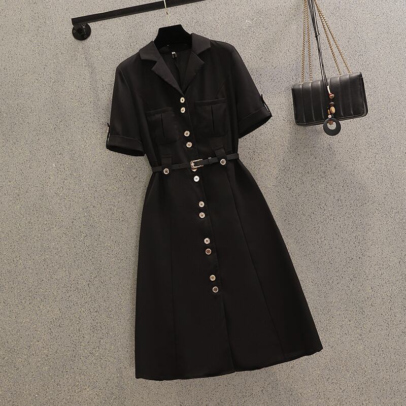 大きいサイズの婦人服 2022 ファットシスター夏の新しいファッション年齢を減らすウエスト痩身シングルブレストスーツドレス 大きめサイズ サマー 夏物 8884115349439017