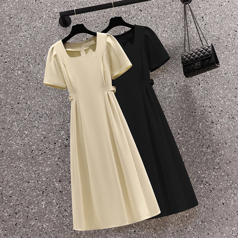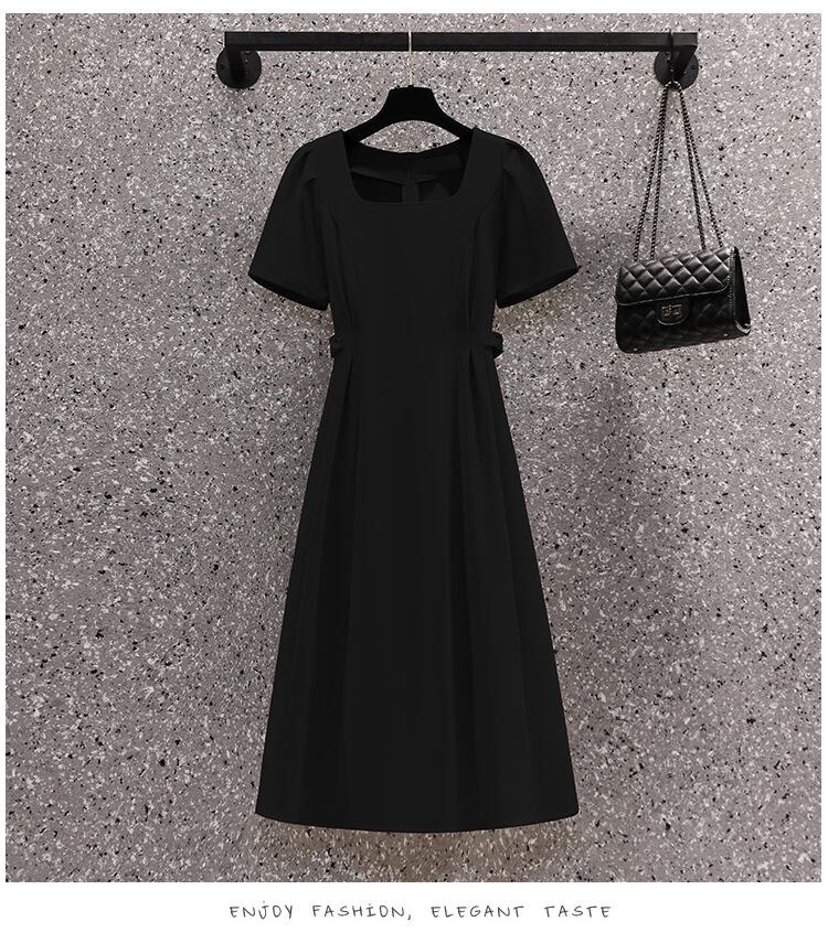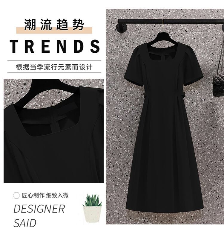 大サイズの婦人服 2022 夏の新しいファットシスターニッチなデザインのフレンチウエストとスクエアカラーの年齢を減らすドレスの女性 大きめサイズ サマー 夏物 スクウェア 8884163655144796