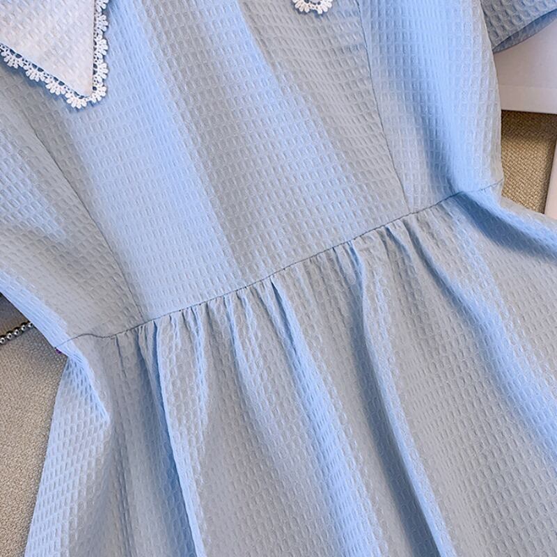 大きいサイズの婦人服 2022 トレンディな女性の夏の新しいファットシスターファッション eign スタイルスリム人形の襟の弓のドレストレンディ リボン 大きめサイズ サマー 夏物 8884172868449358