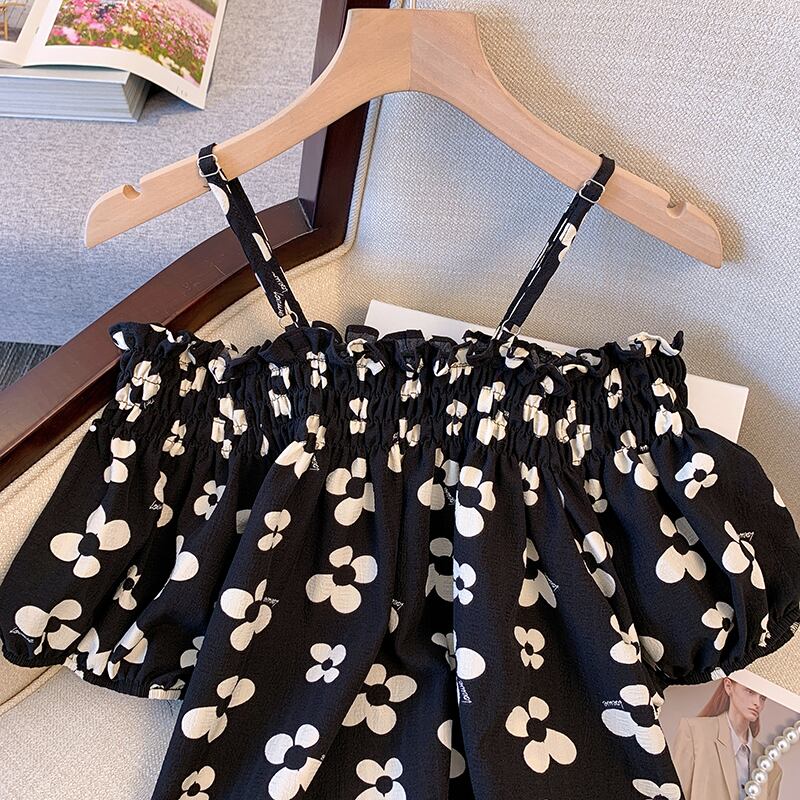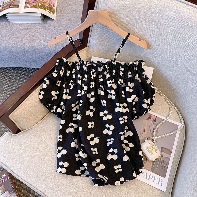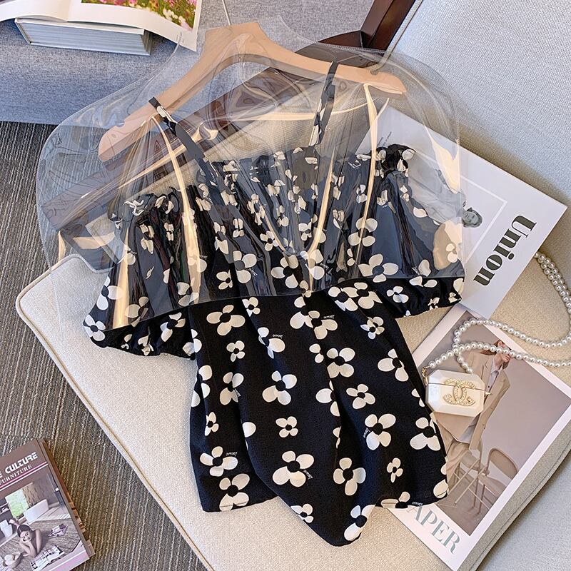大きいサイズの婦人服 2022 ファットシスター夏の新しいオールマッチ薄い気質パフスリーブワンショルダー花柄トップの女性 大きめサイズ サマー 夏物 8884197350716174