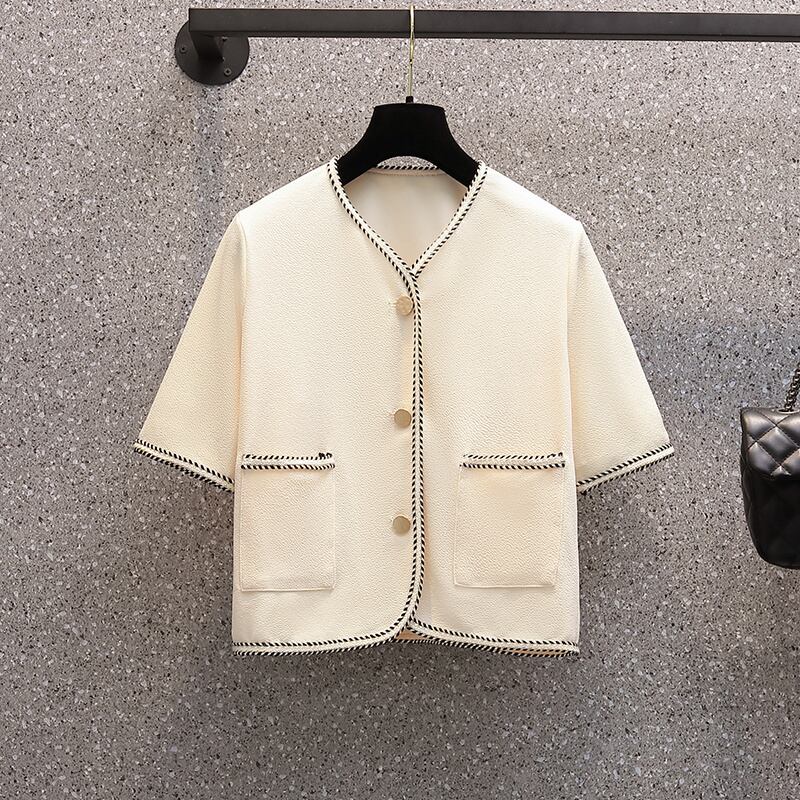 大きいサイズの婦人服 2022 トレンディな女性の夏の新しいファットシスターの気質ルーズで薄い V ネックオールマッチファッションカーディガン Tシャツ 大きめサイズ サマー 夏物 Vネック 8884170971098751