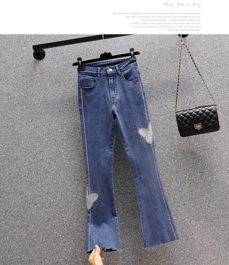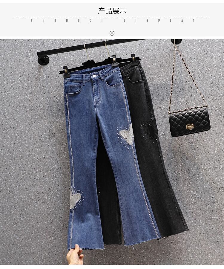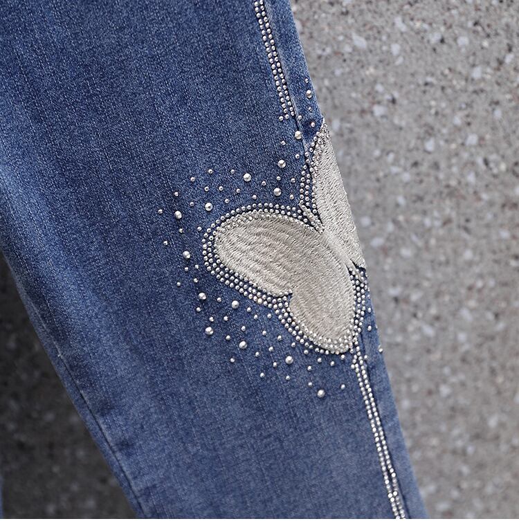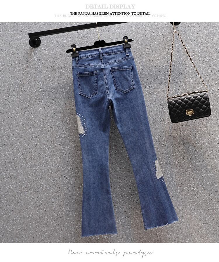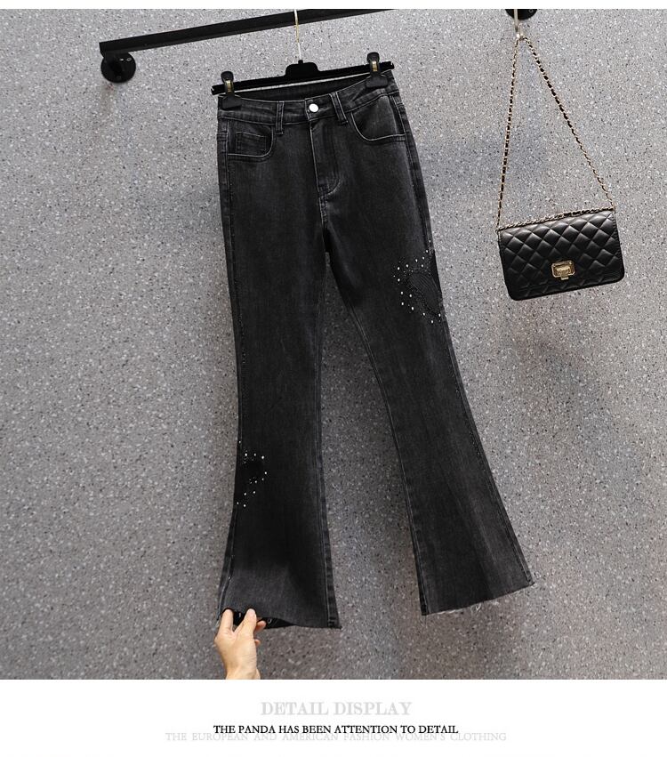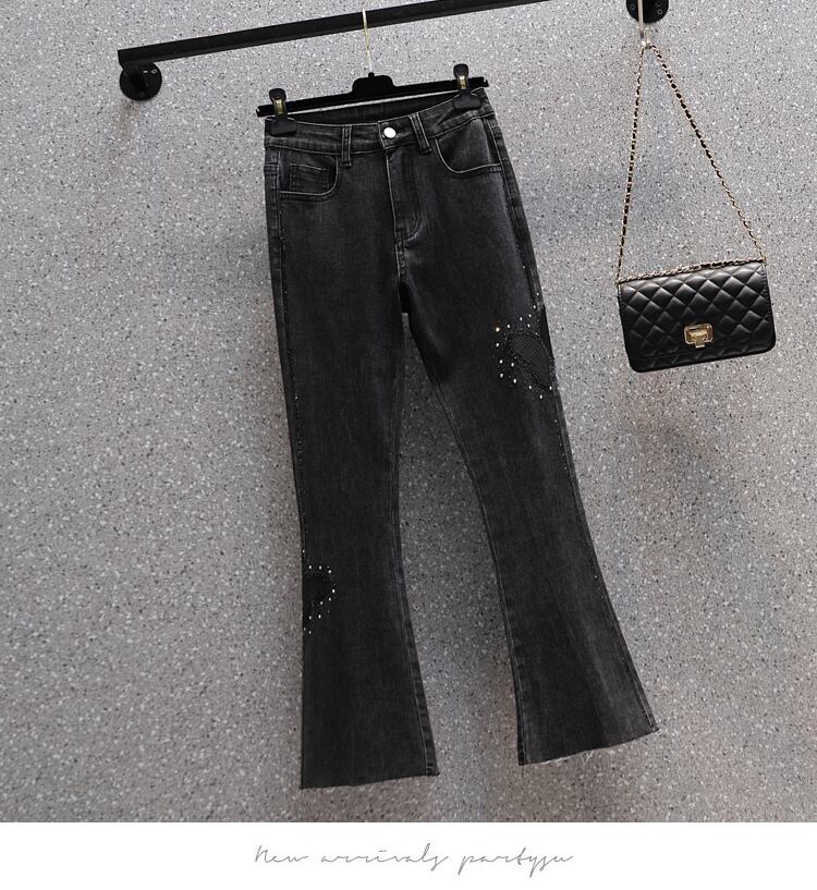 大サイズの婦人服 2022 秋の新ファットシスターファッション掘削マイクロプル弾性ハイウエストスリムカジュアルジーンズ ハイウェスト エラスティック 伸縮 大きめサイズ オータム 秋物 8884110445200193