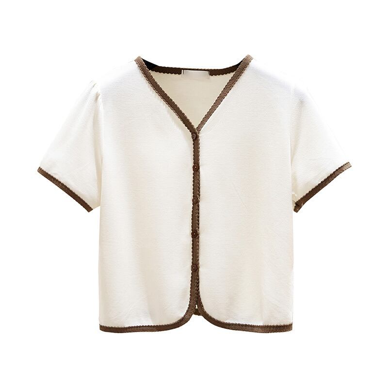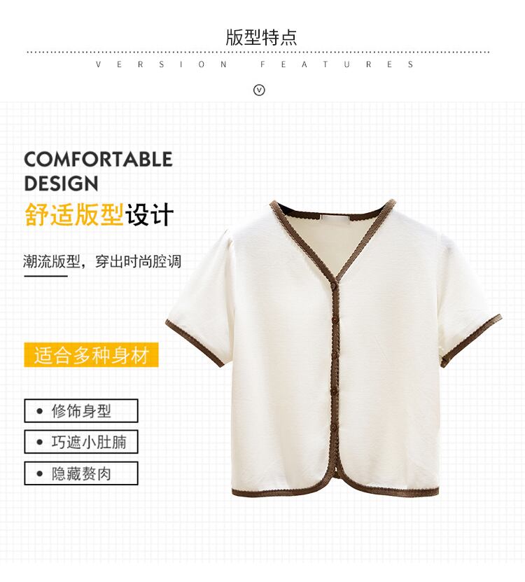 大きいサイズの婦人服 2022 夏新ファットシスターファッションデザインスモールフレンチスリム V ネックカーディガン Tシャツ女性 大きめサイズ サマー 夏物 Vネック 8884176749783158