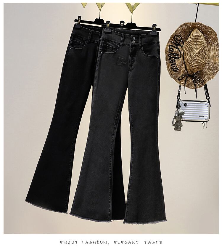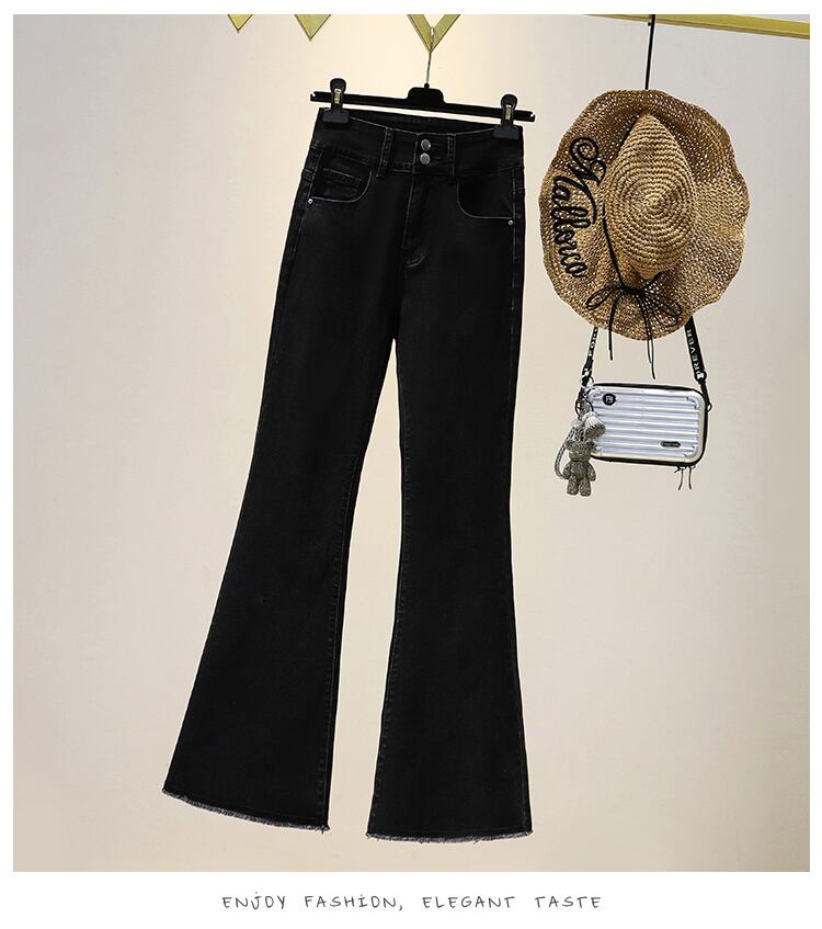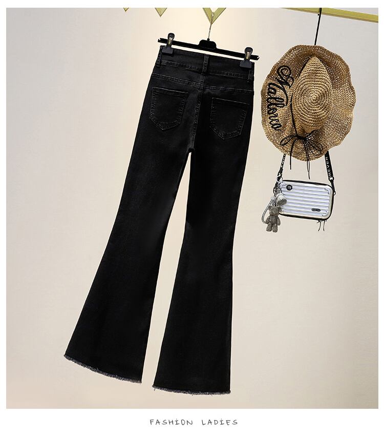 大サイズの婦人服 2022 夏の新しいファットシスターハイウエストマイクロフレアファッションカジュアル痩身生エッジストレッチジーンズ 大きめサイズ サマー 夏物 8884196454060959