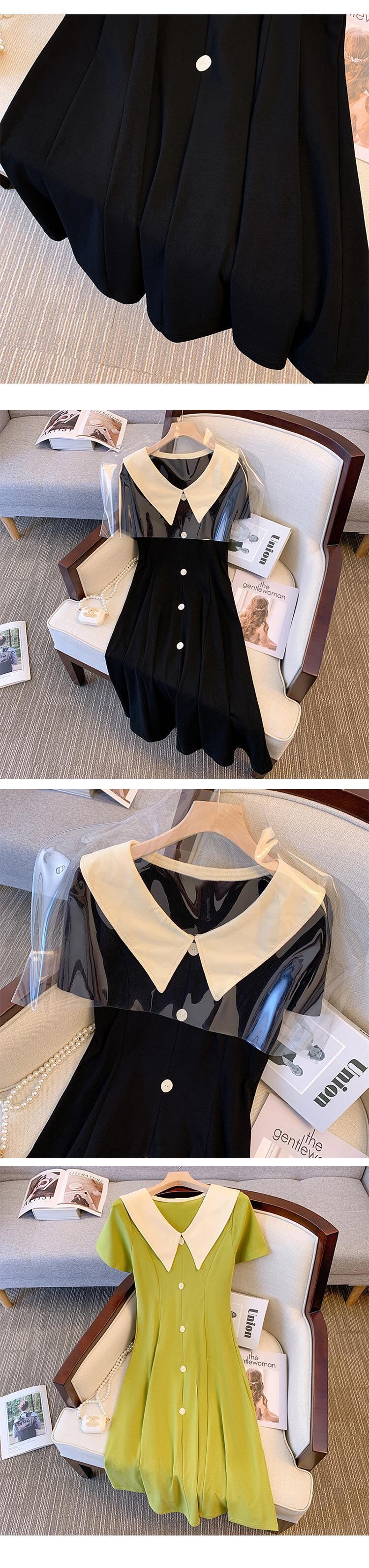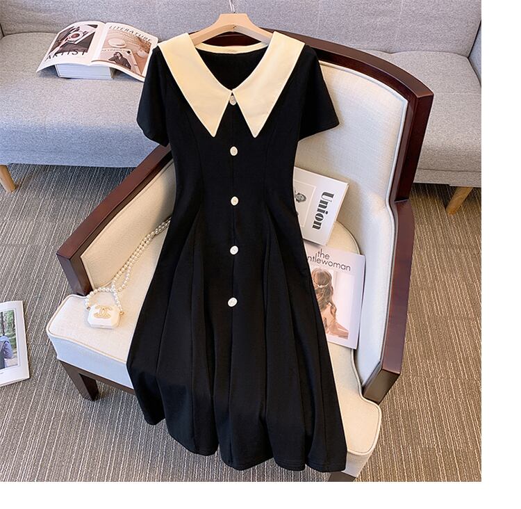 大きいサイズの婦人服 2022 ファットシスター夏の新しいファッションオールマッチ薄い人形の襟のウエストドレス 大きめサイズ サマー 夏物 8884131135698307