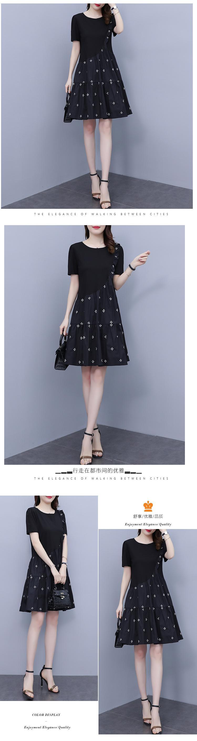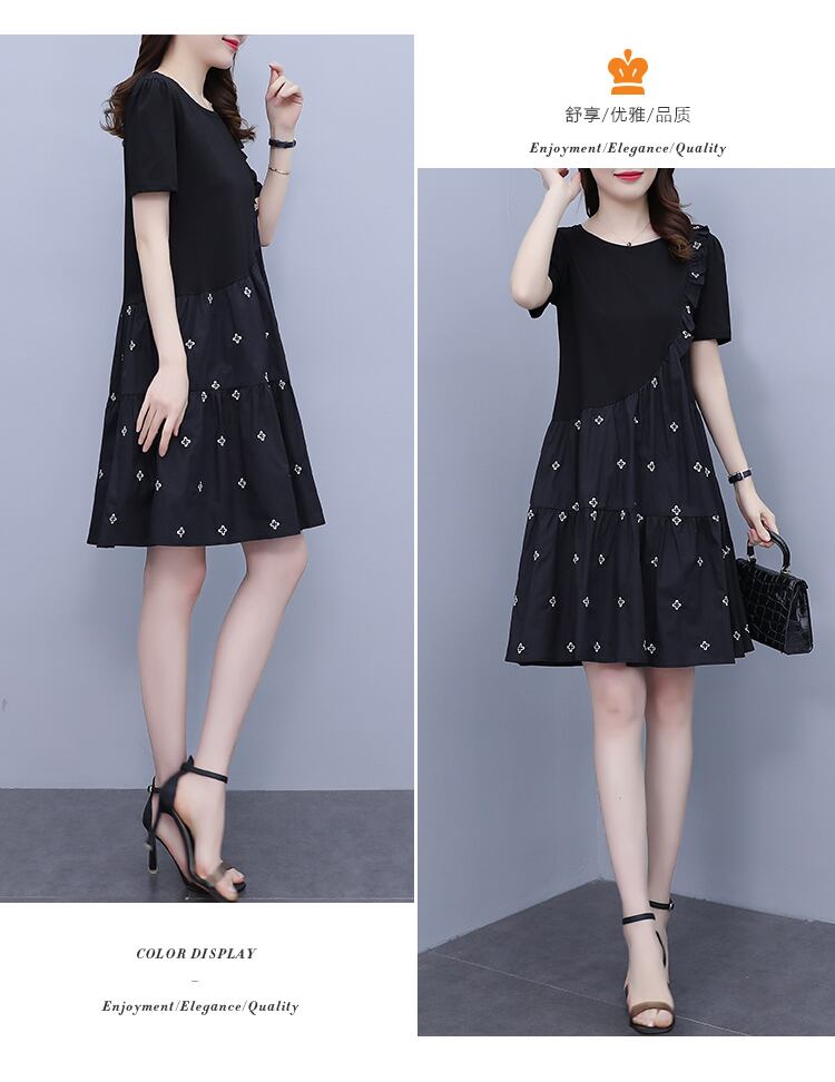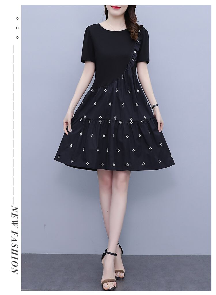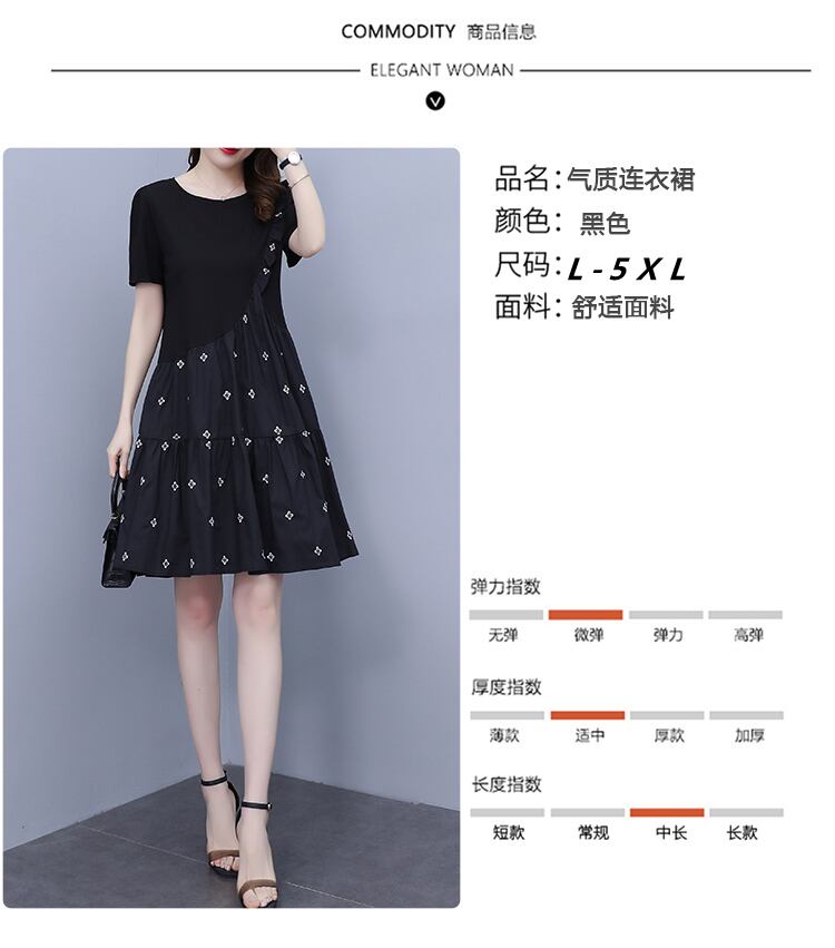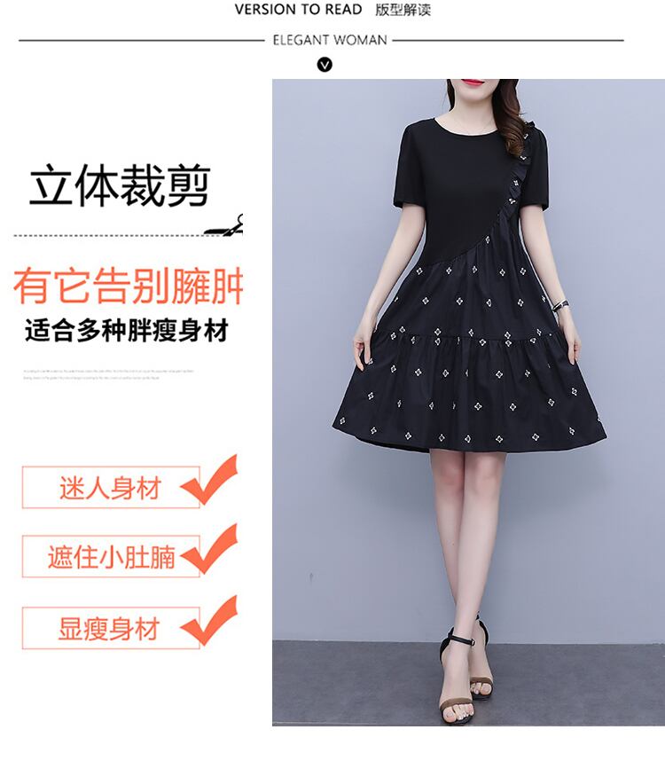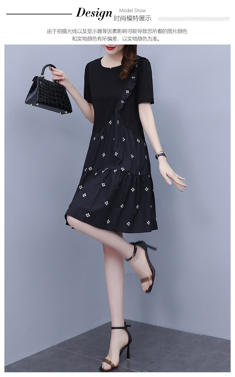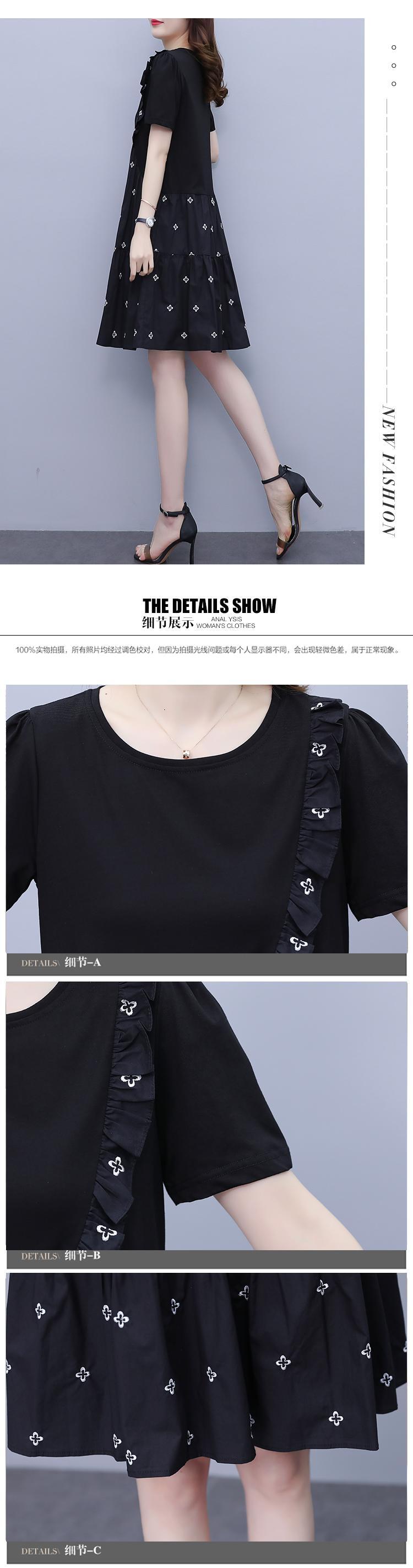 大きいサイズの婦人服 2022 脂肪姉妹夏の新しいスリム フリル刺繍ステッチ半袖ルーズ ドレス 大きめサイズ サマー 夏物 8884149024541041