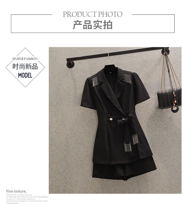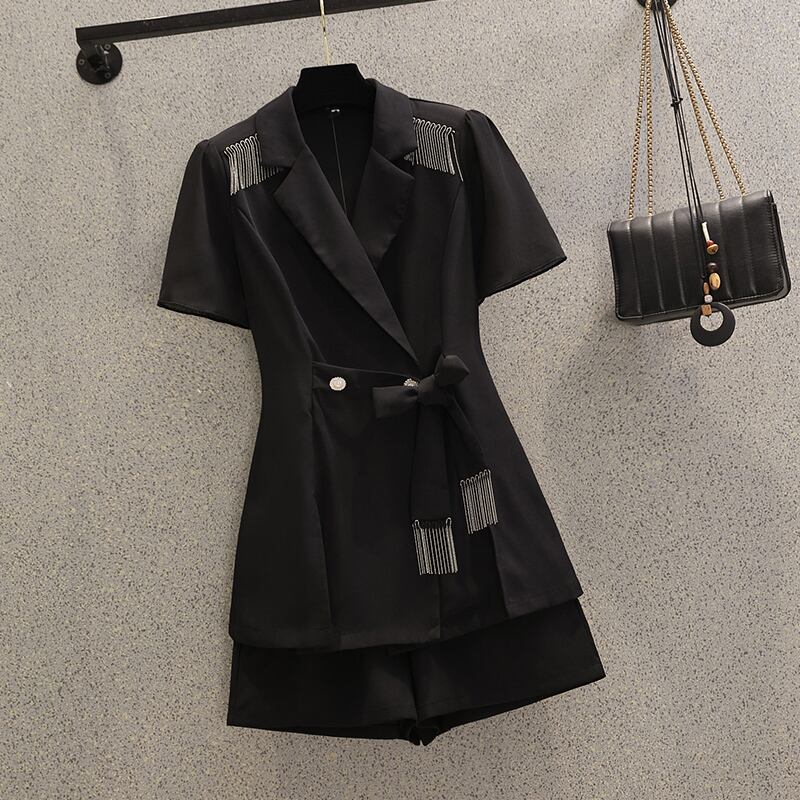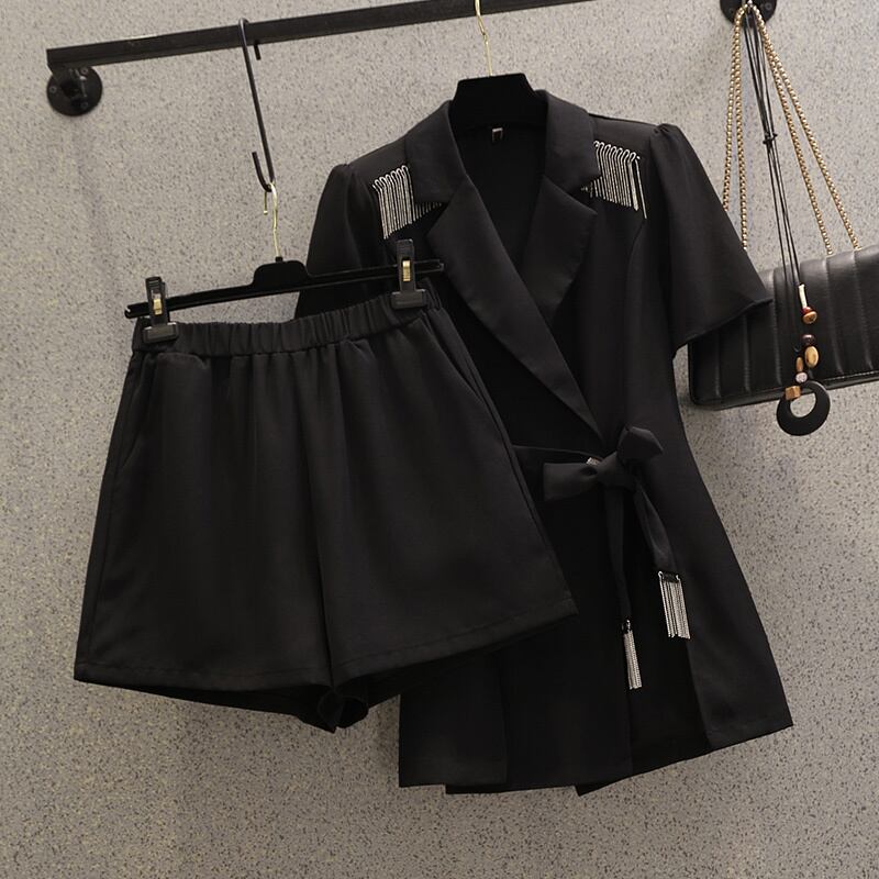 大きいサイズの婦人服 2022 ファットシスター夏の新しいファッション薄いスーツジャケットカジュアルショーツツーピーススーツ 大きめサイズ サマー 夏物 ブルマー 8884114497380410
