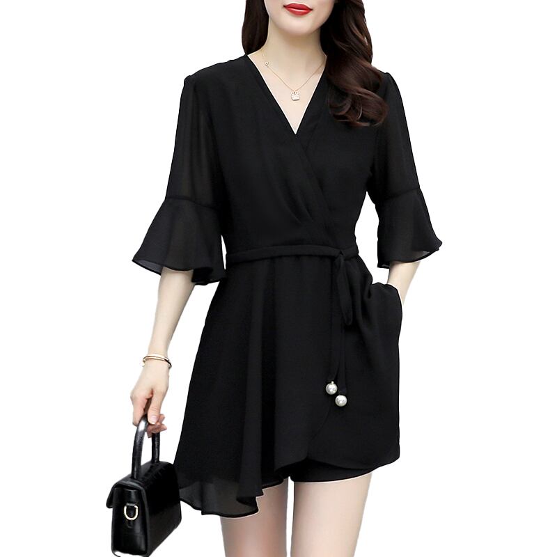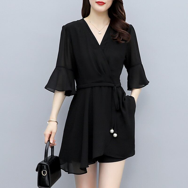 大きいサイズの婦人服 2022 ファット シスター 夏の新しいスタイルのショーツ 肉付きをカバーし、薄いショーツ ファッショナブルなウエスタン スタイル シフォン シャツ レディース ツーピース スーツ 大きめサイズ サマー 夏物 ブルマー 8884190358825205