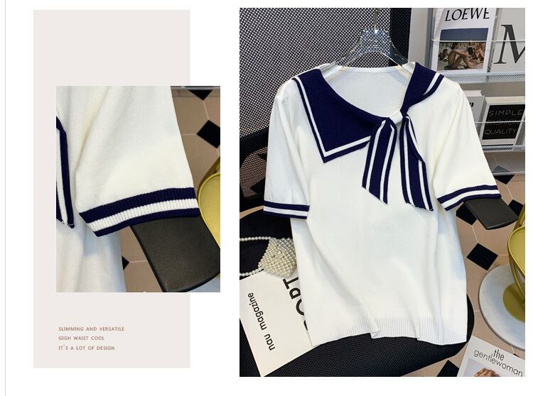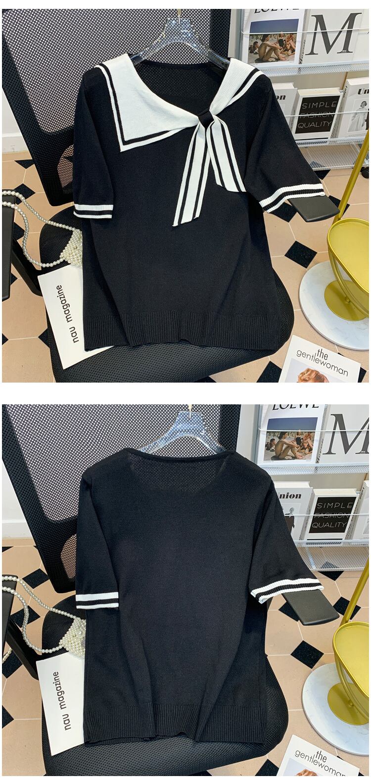 大きいサイズの女性の 2022 ファットシスター夏の新しいニット tシャツ気質ネイビーカラーオールマッチ薄い半袖トップ 大きめサイズ サマー 夏物 8884190274480196
