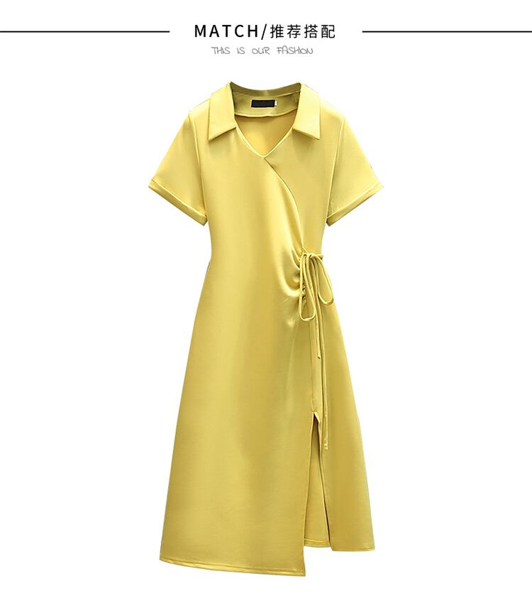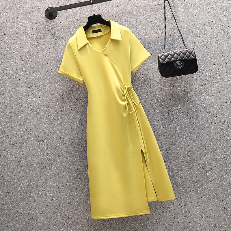 大きいサイズの婦人服 2022 ファットシスター夏の新しい気質不規則な巾着薄いシャツスカートファッションドレス 大きめサイズ サマー 夏物 8884154975005300
