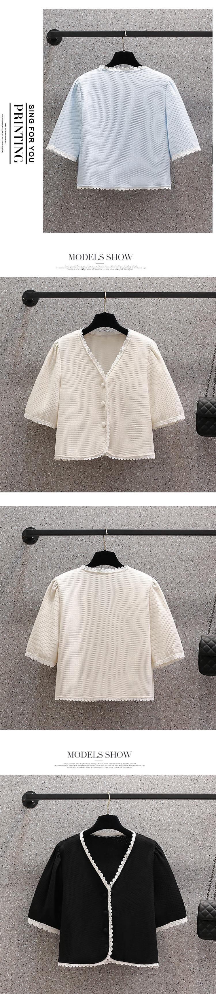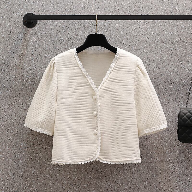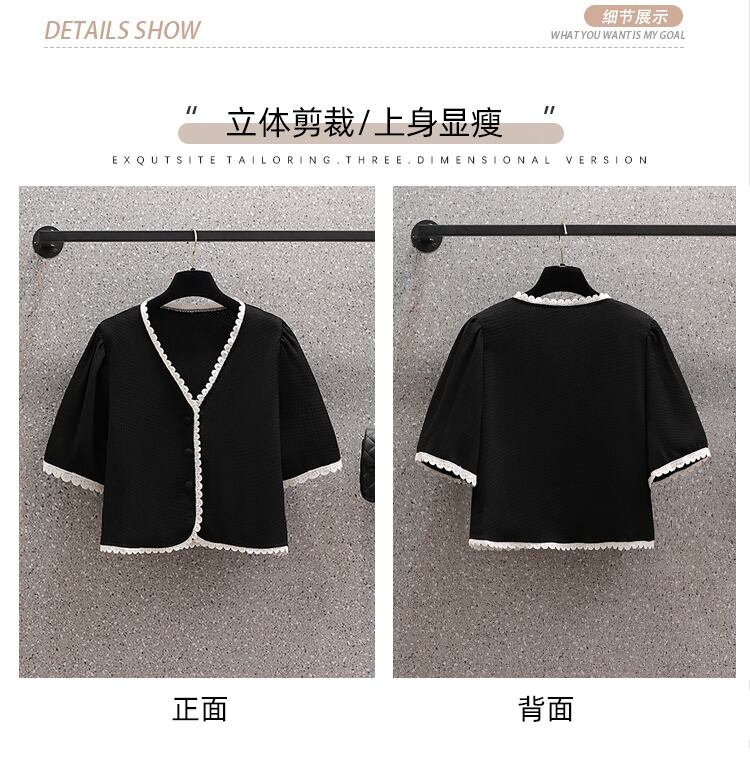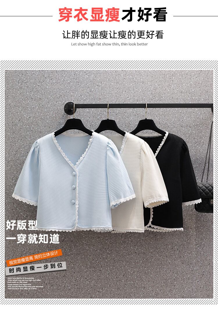大きいサイズの婦人服 2022 夏の新しい太った姉妹のカジュアルなレースのオールマッチ年齢を減らす、痩身、腹を覆う気質のシャツの女性 大きめサイズ サマー 夏物 8884136659282894