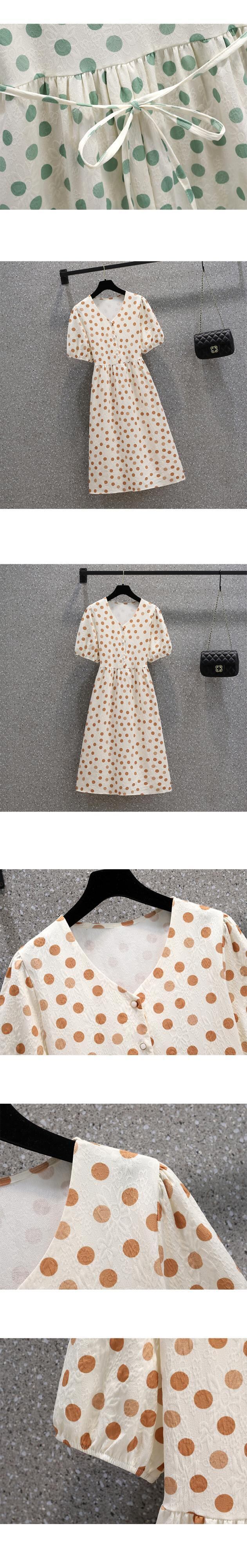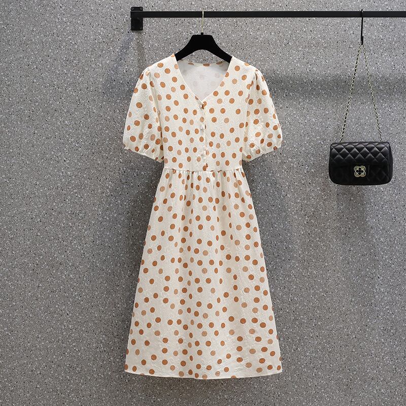 大きいサイズの婦人服 2022 ファットシスター夏の新しいフレンチスタイル小さな新鮮な年齢を減らす腹カバースリムポルカドットドレス 大きめサイズ サマー 夏物 8884191706575282