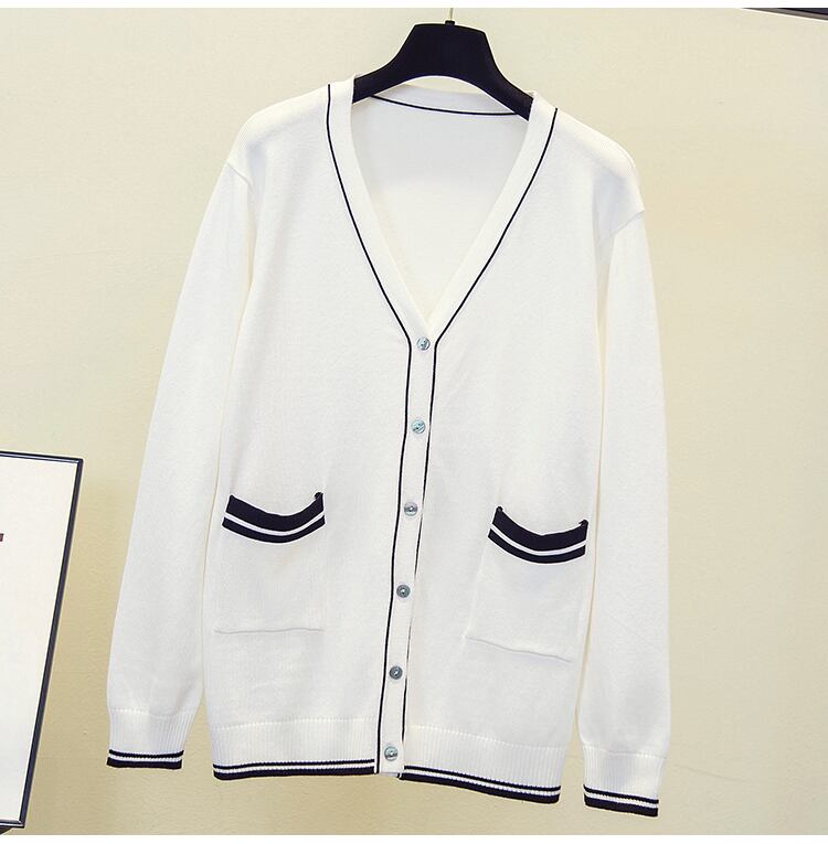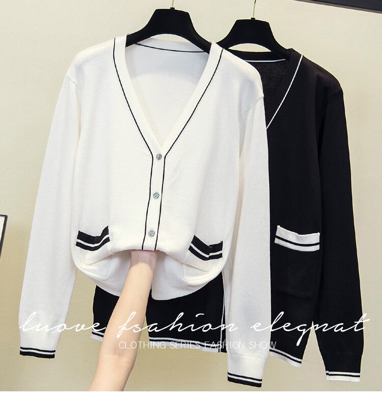 大きいサイズの婦人服2022秋の新しいファットシスターファッションストライプのカーディガンの気質は、肉を覆い、薄いカジュアルなニットセーターを見せます 大きめサイズ オータム 秋物 8884143957375968
