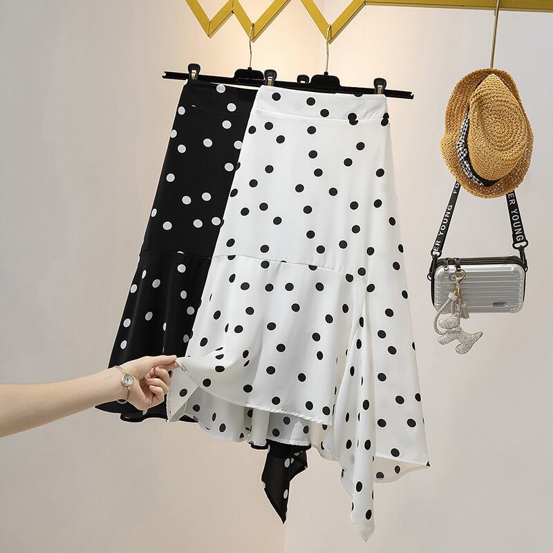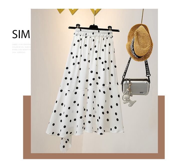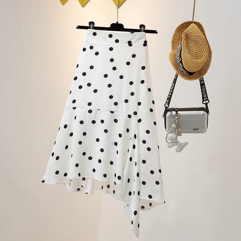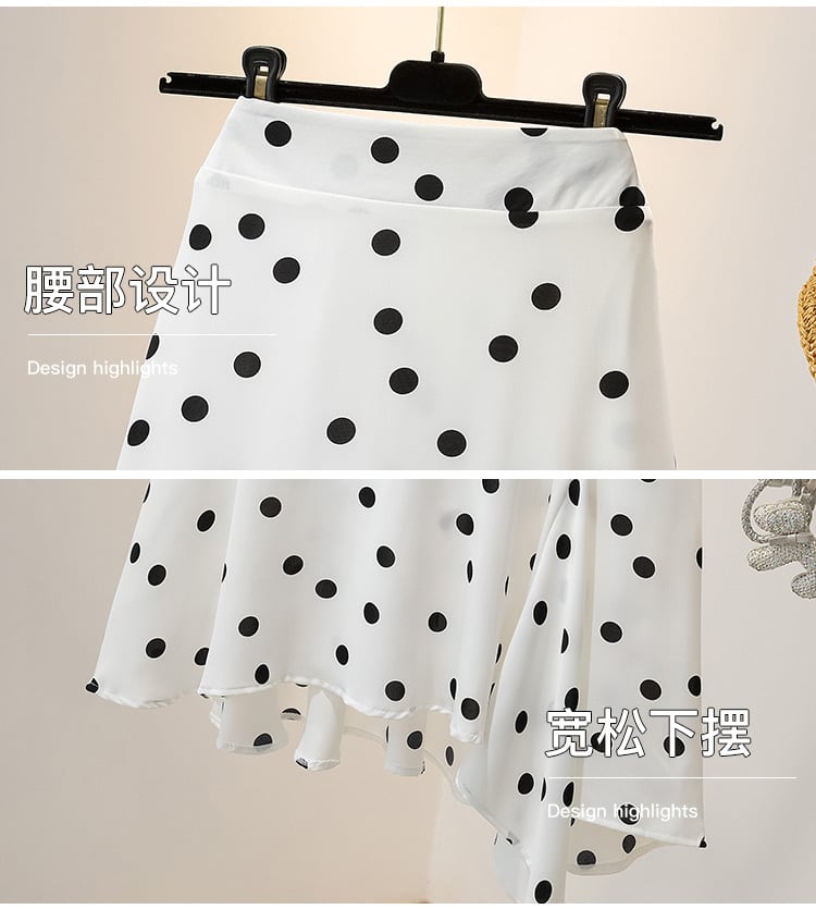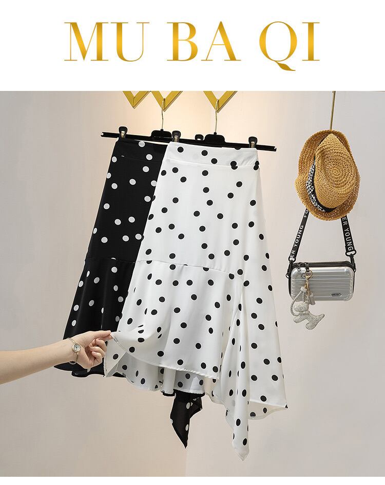 大きいサイズの婦人服2022ファットシスター夏の新しいウェーブポイントミッドレングスの不規則なデザインのフィッシュテールスカート 大きめサイズ サマー 夏物 8884185026196448