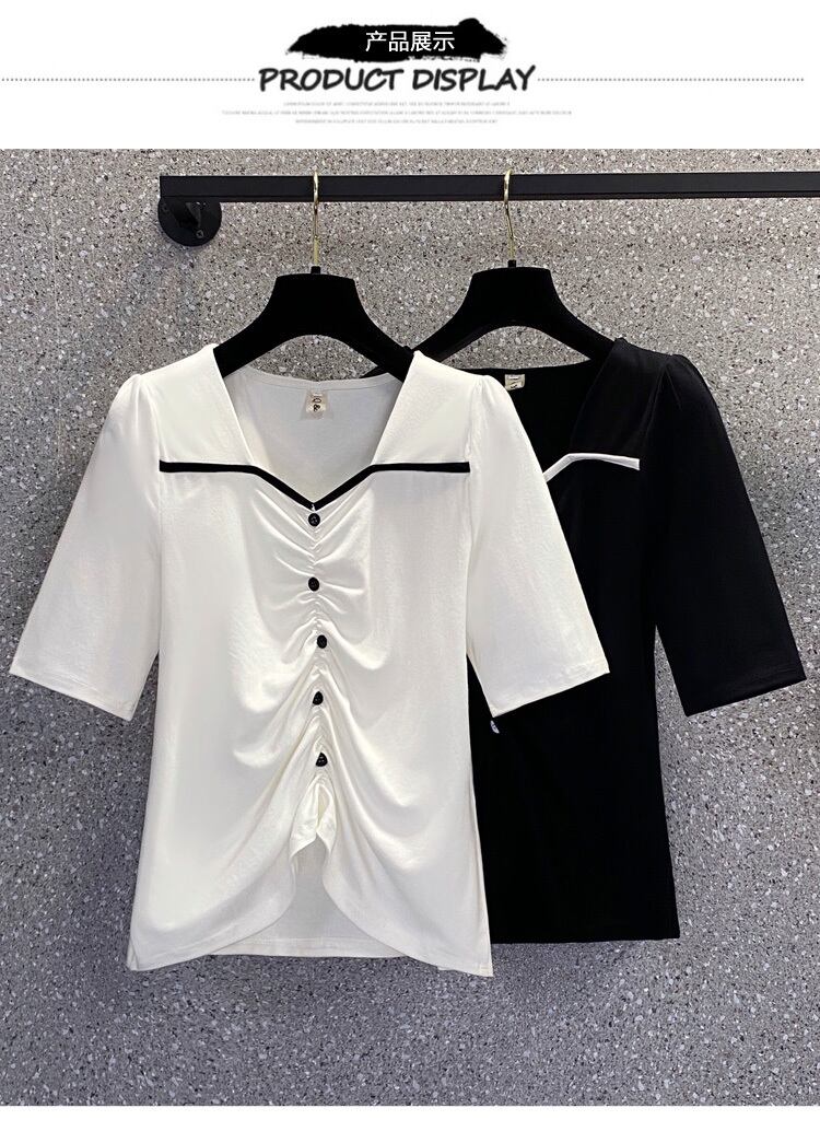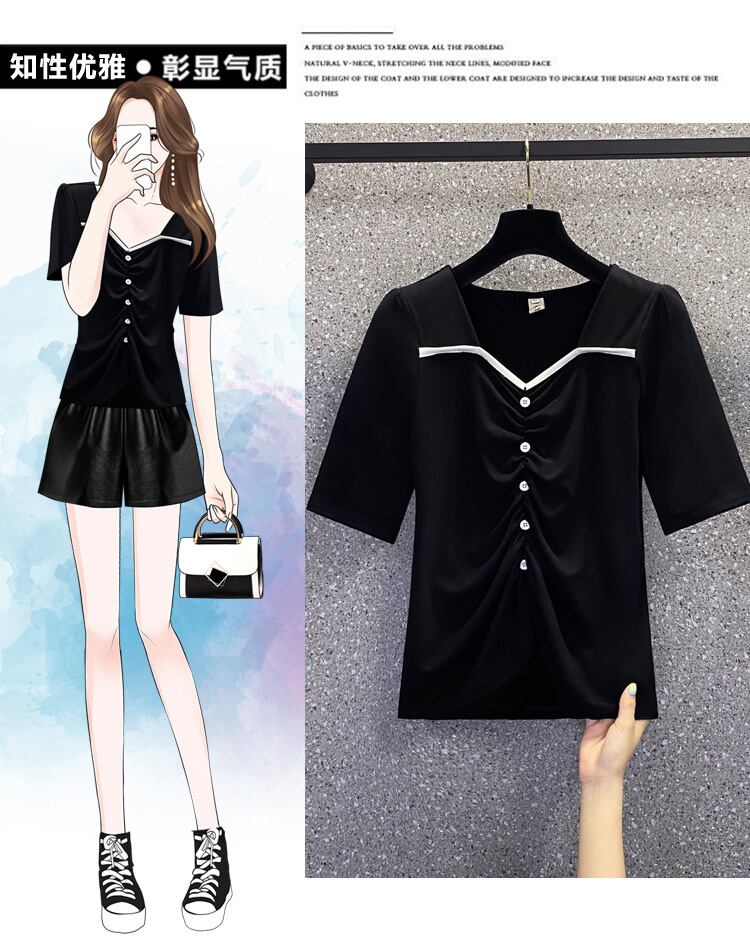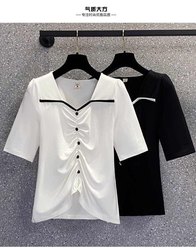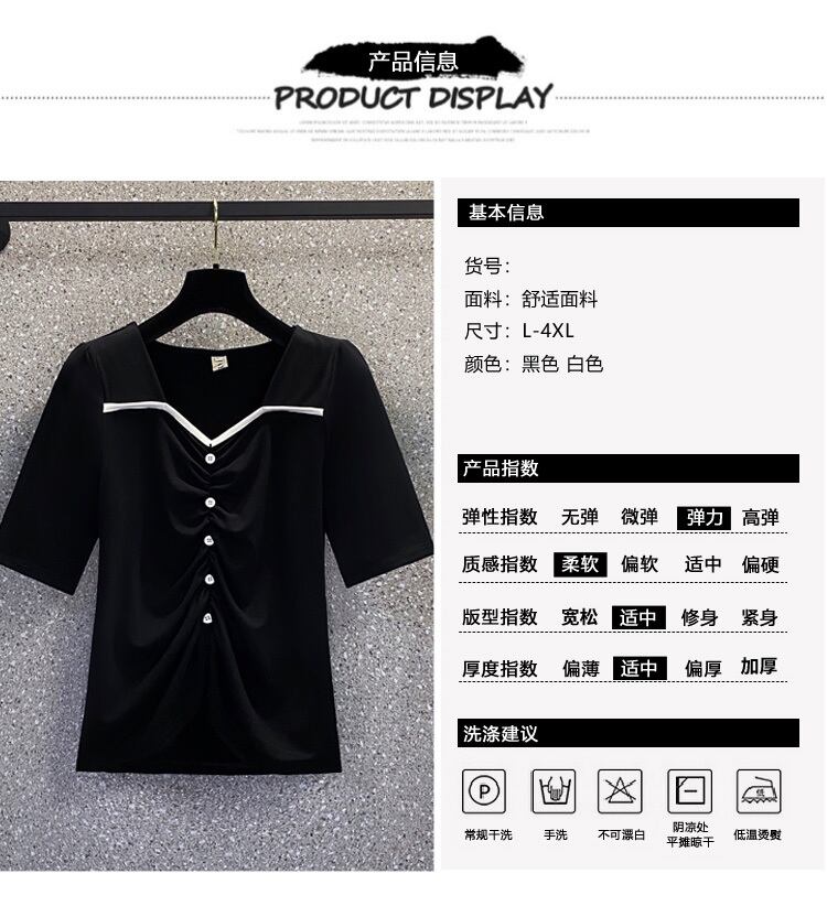 大きいサイズの婦人服 2022 夏の新しいファット シスター ファッション気質年齢減少カバー ベリー オールマッチ デザイン半袖 Tシャツ 大きめサイズ サマー 夏物 8884198012719097