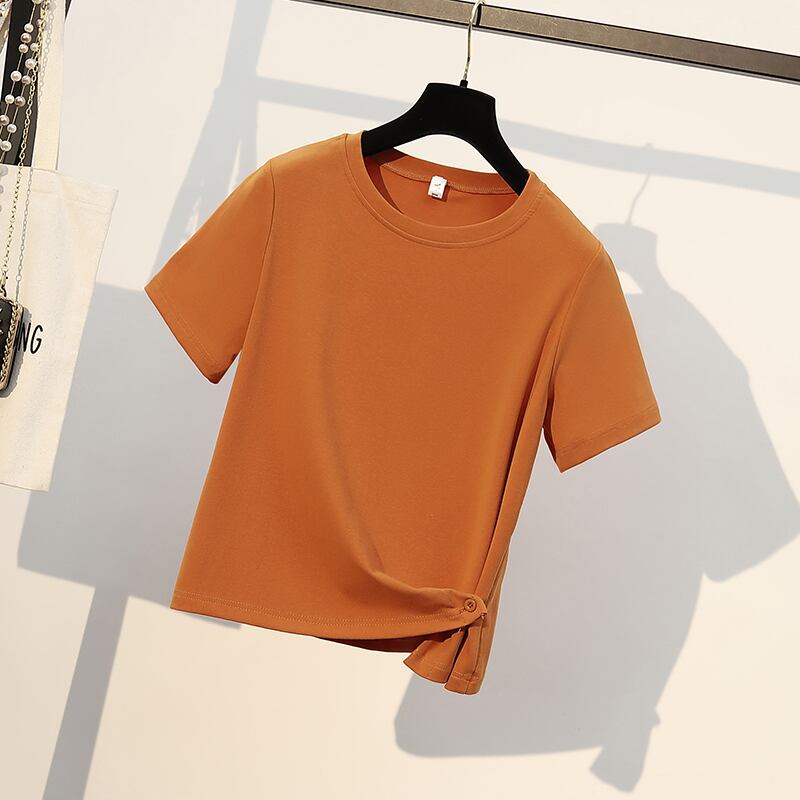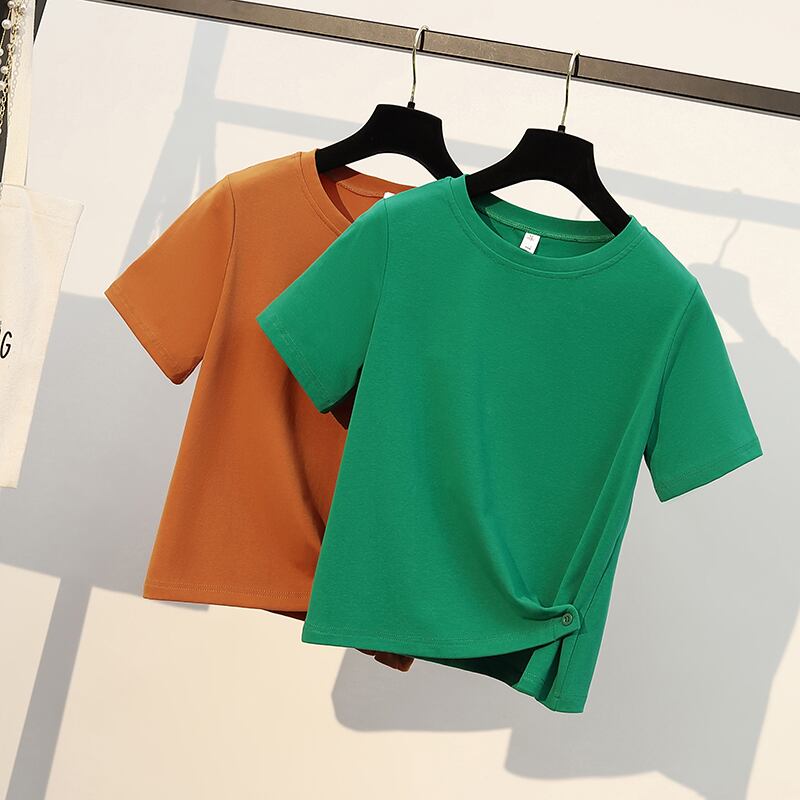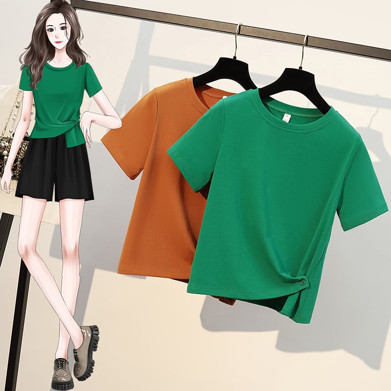 大きいサイズの婦人服 2022 太った姉妹の夏の新しいバージョン全試合短い不規則なキンク トップ半袖 T シャツ ショート 大きめサイズ サマー 夏物 Tシャツ 8884115790468277