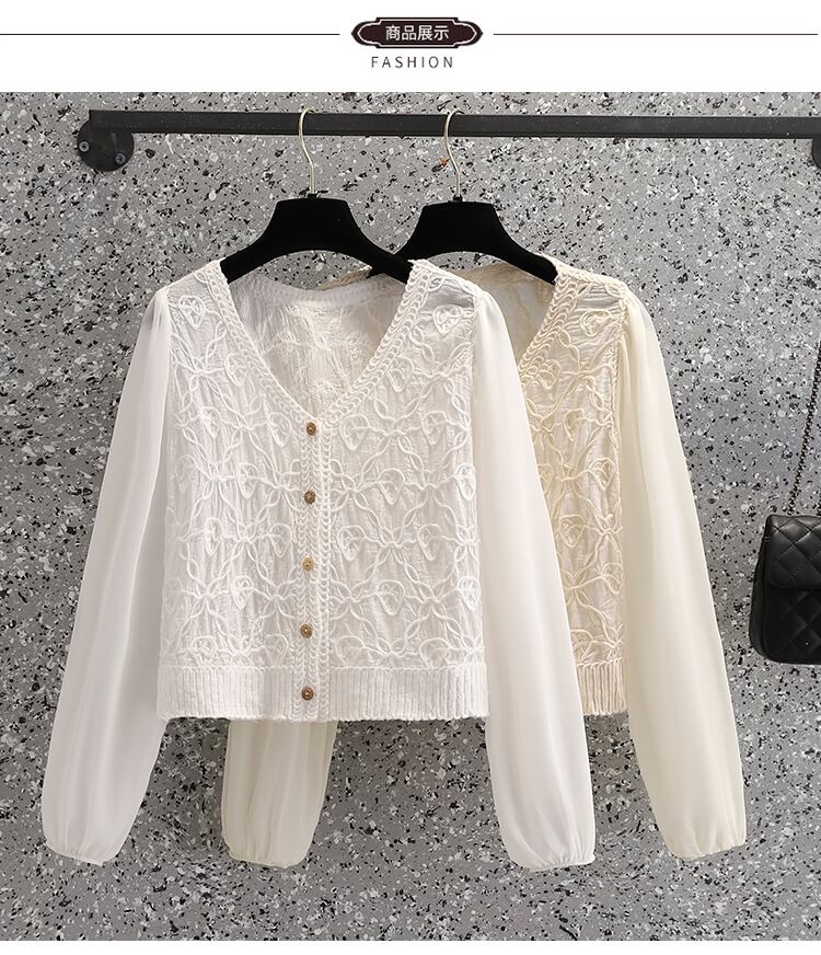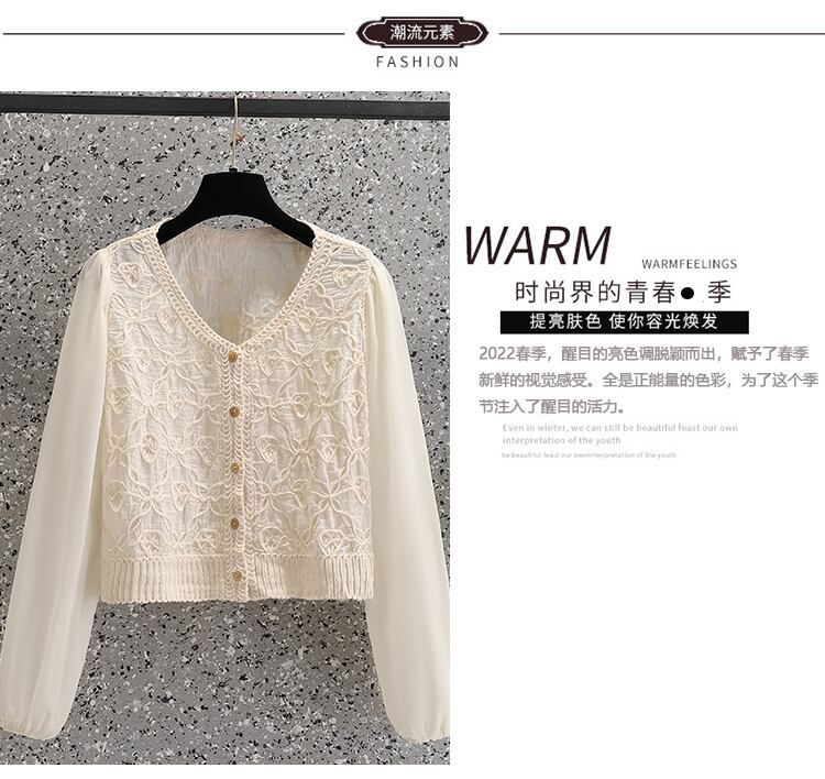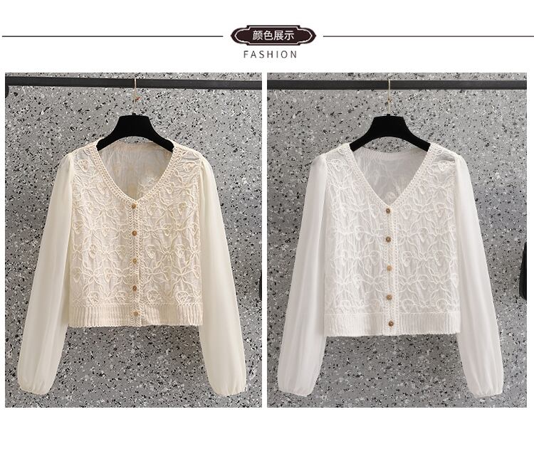 大サイズの婦人服 2022 脂肪姉妹夏新かぎ針編み中空レースカーディガン緩いシフォンステッチトップ女性 大きめサイズ サマー 夏物 8884130989681656