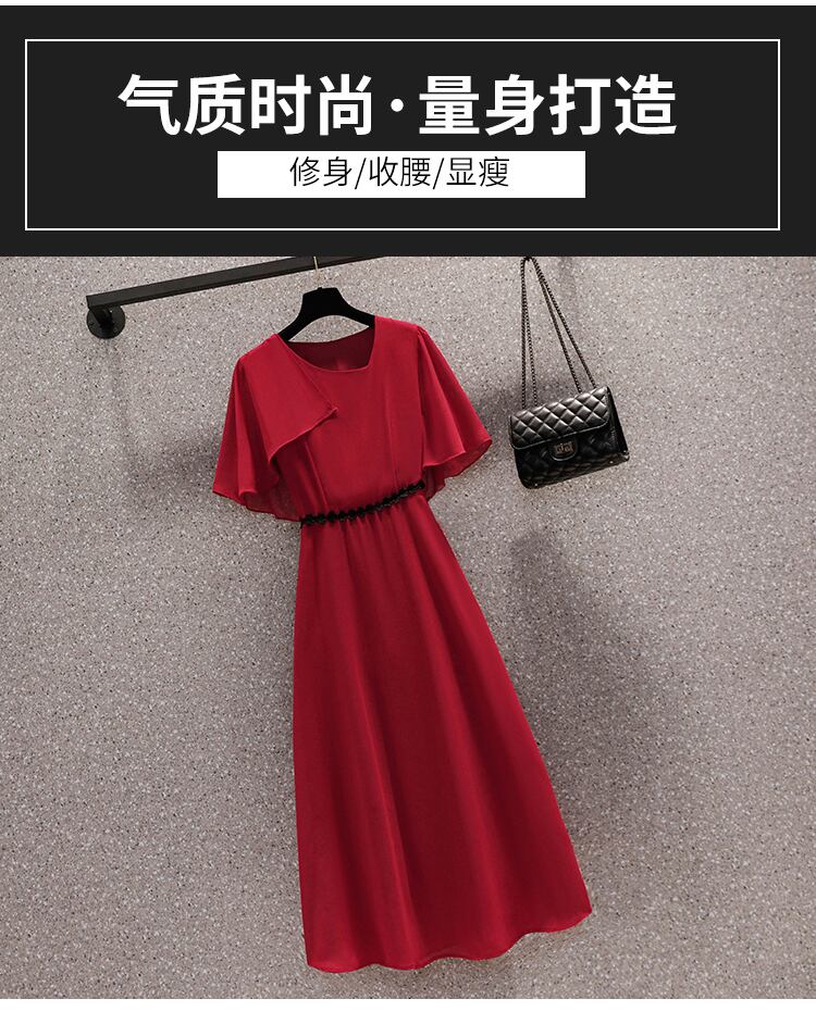 大きいサイズの婦人服 2022 トレンディな女性の夏の新しいファットシスターのハイエンドな腰の気質のスリムなフィット感と薄いシフォンのドレス 大きめサイズ サマー 夏物 8884130621778303
