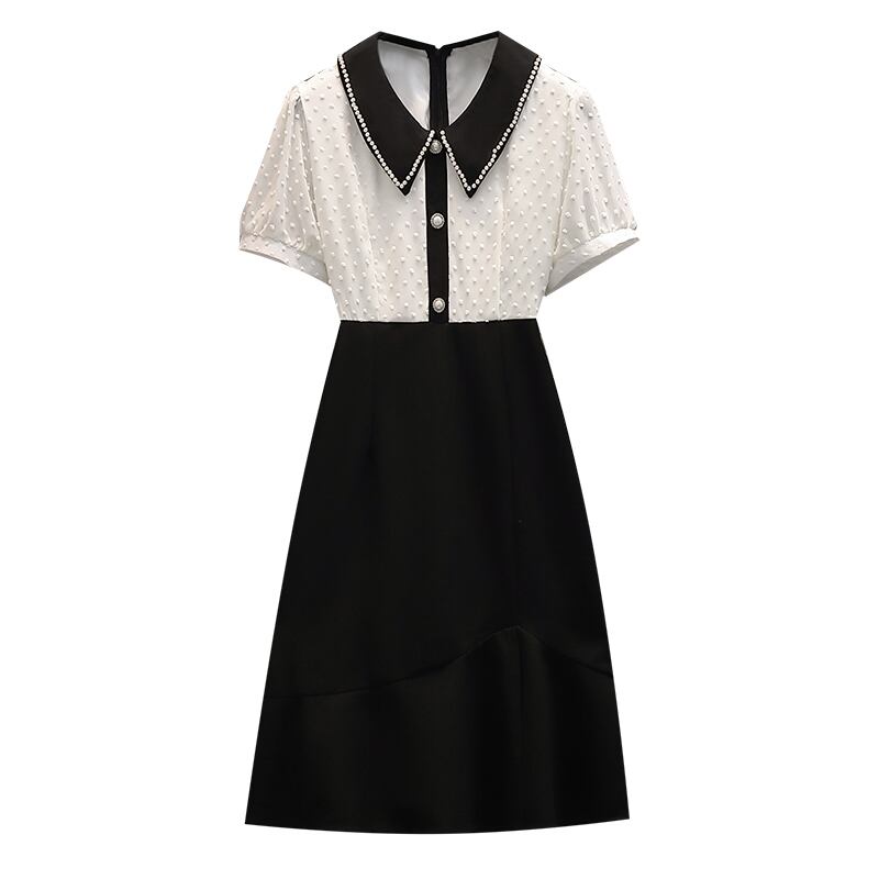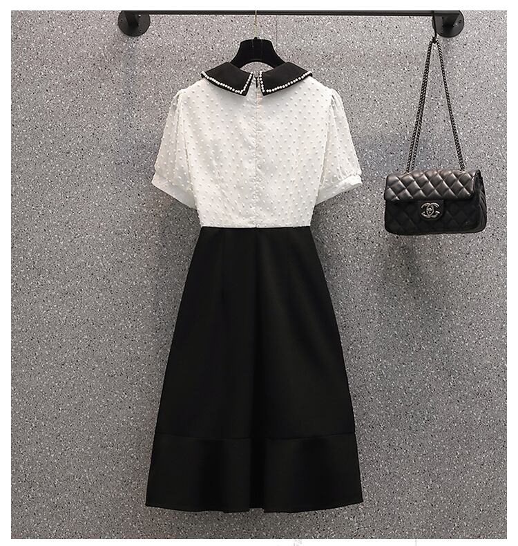 大きいサイズの婦人服 2022 ファットシスター夏の新しい人形の襟の気質年齢を減らす自己修養フェイクツーピースステッチドレス 大きめサイズ サマー 夏物 8884134272774052