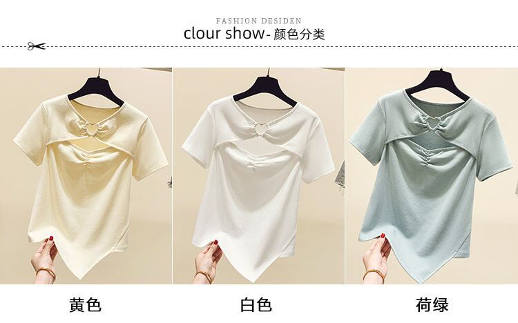 大きいサイズの婦人服 2022 トレンディな女性の夏の新しい太った姉妹のファッションの気質慎重な機械不規則な半袖 tシャツトップ 大きめサイズ サマー 夏物 8884165453085004