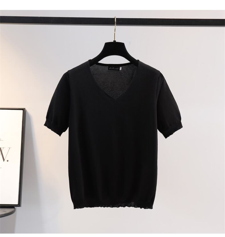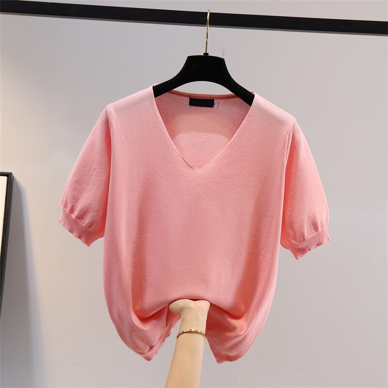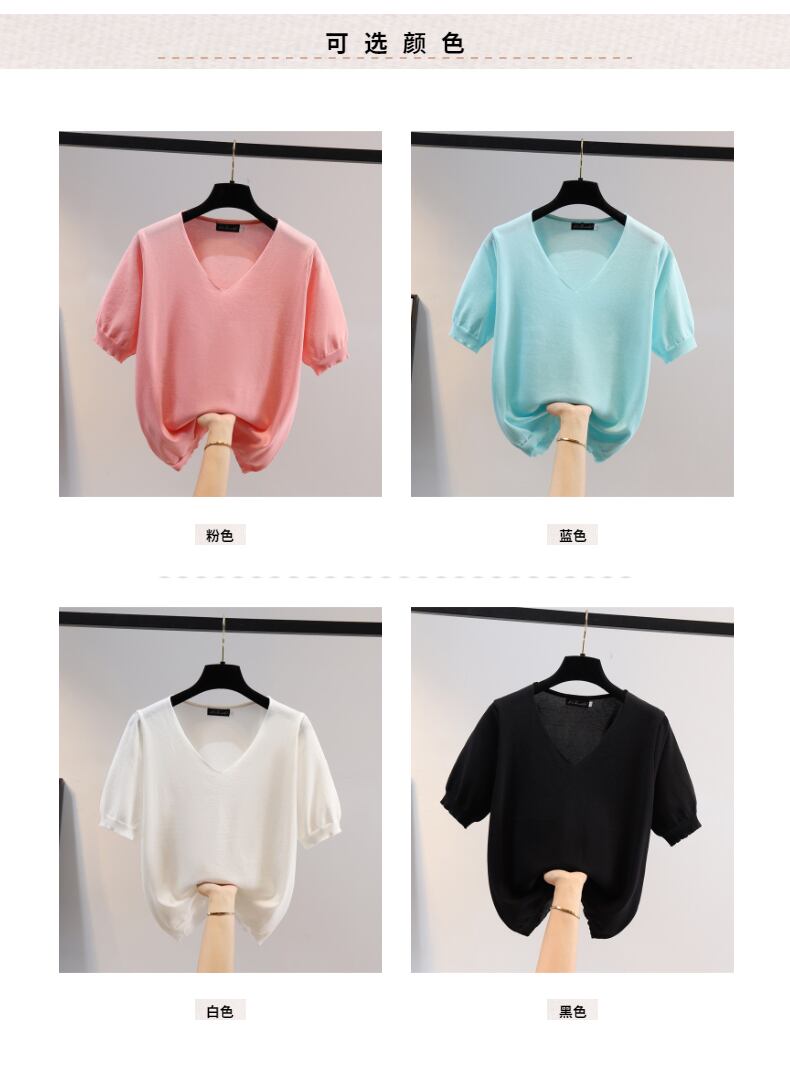 大きいサイズの婦人服 2022 ファットシスター夏の新しいファッションルーズ半袖 tシャツアイスシルクニットセーター薄いトップ 大きめサイズ サマー 夏物 8884138248297850