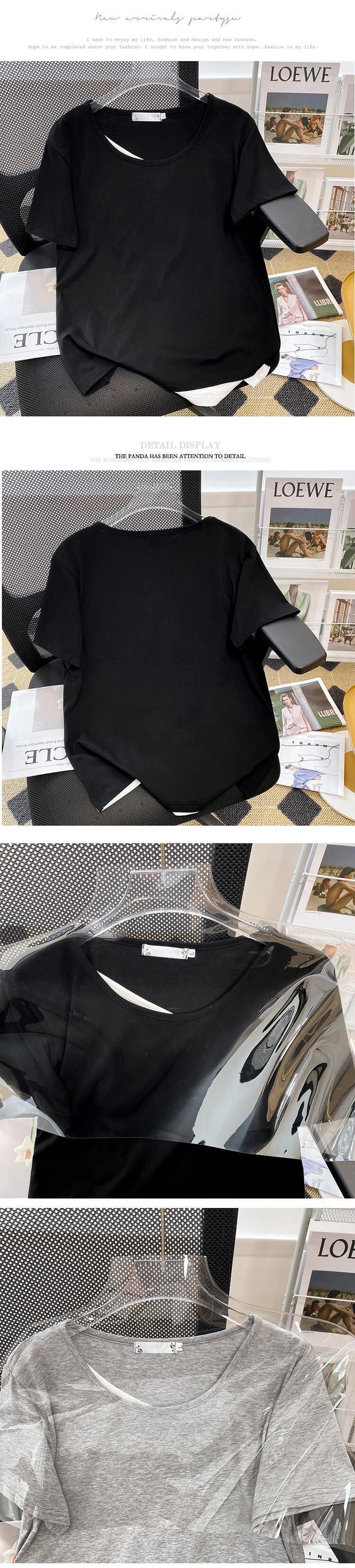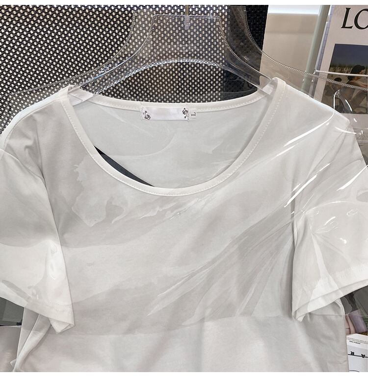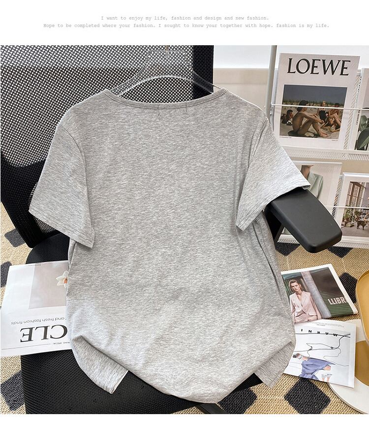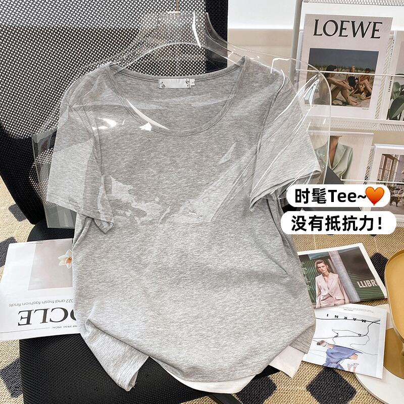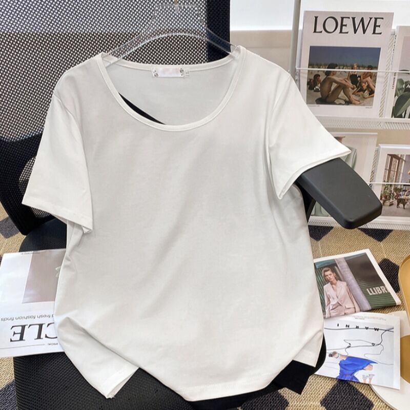 大きいサイズの婦人服 2022 夏の新しいファット シスター eign スタイル薄い半袖トップ デザイン ルーズ ステッチ Tシャツ 大きめサイズ サマー 夏物 8884199226280376