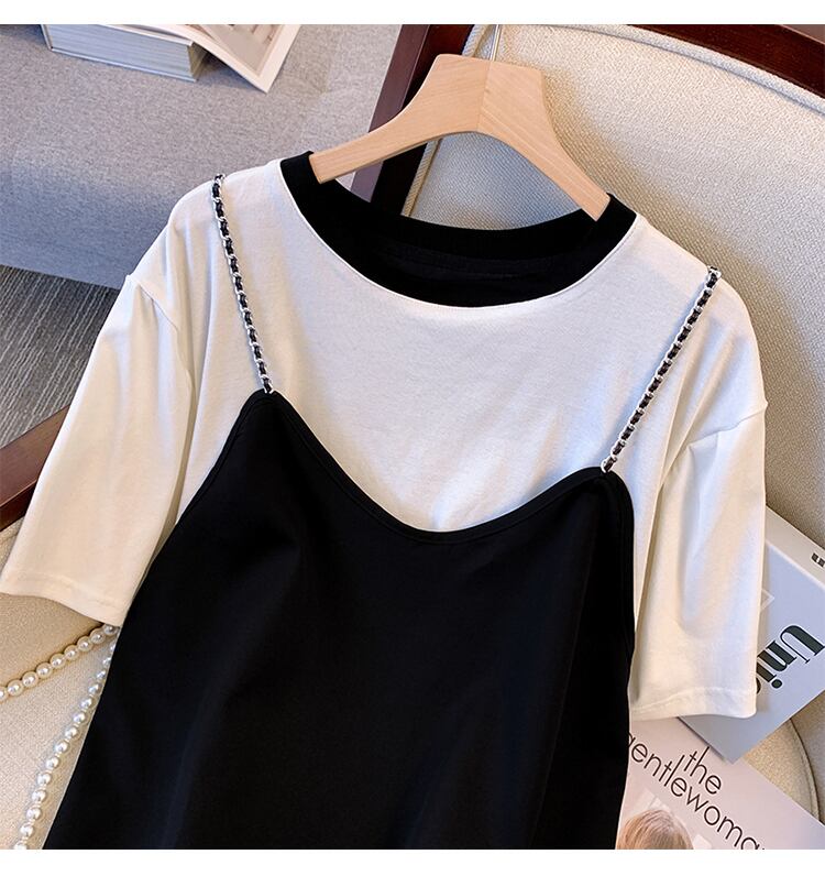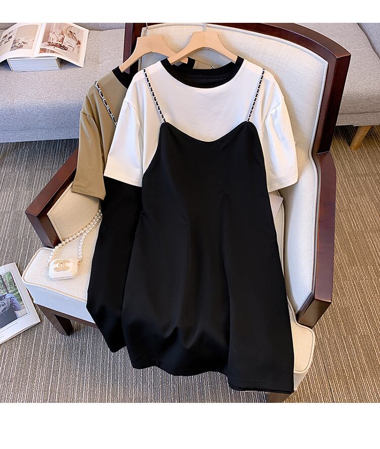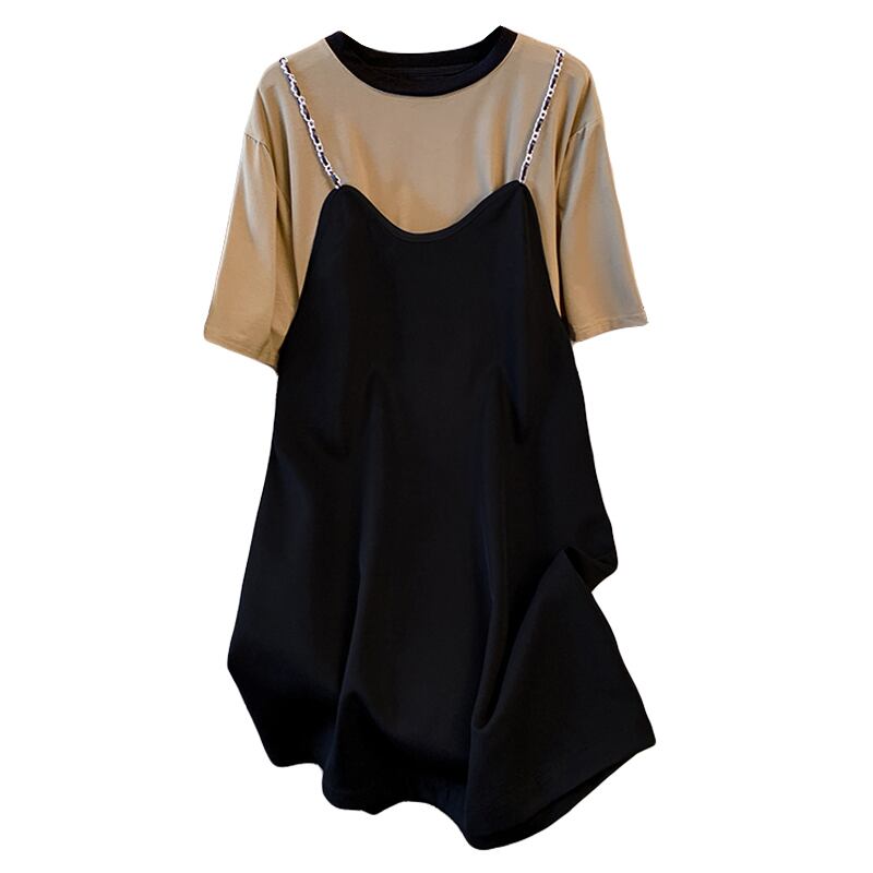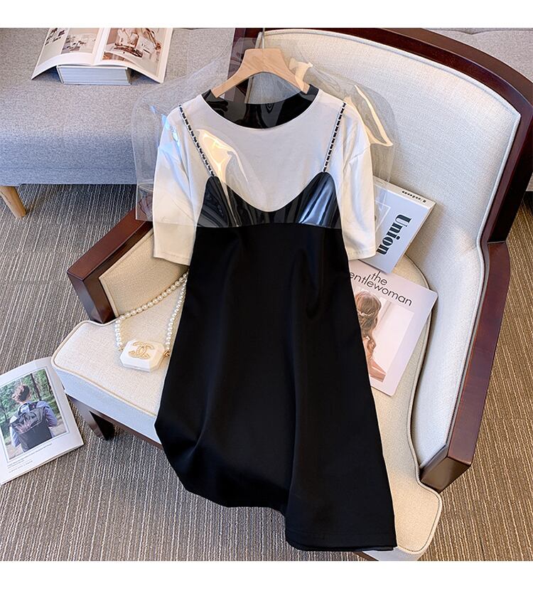 大きいサイズの婦人服 2022 ファットシスター夏の新しいファッションオールマッチ薄いフェイクツーピーススリングステッチドレス 大きめサイズ サマー 夏物 8884137623224680