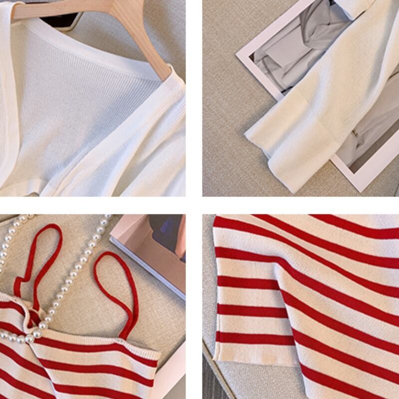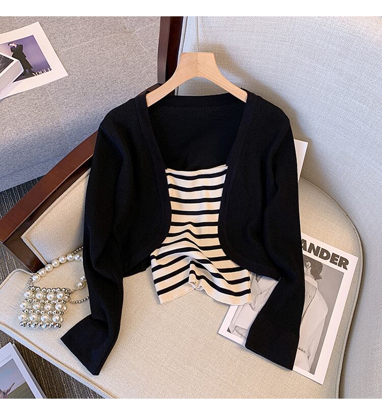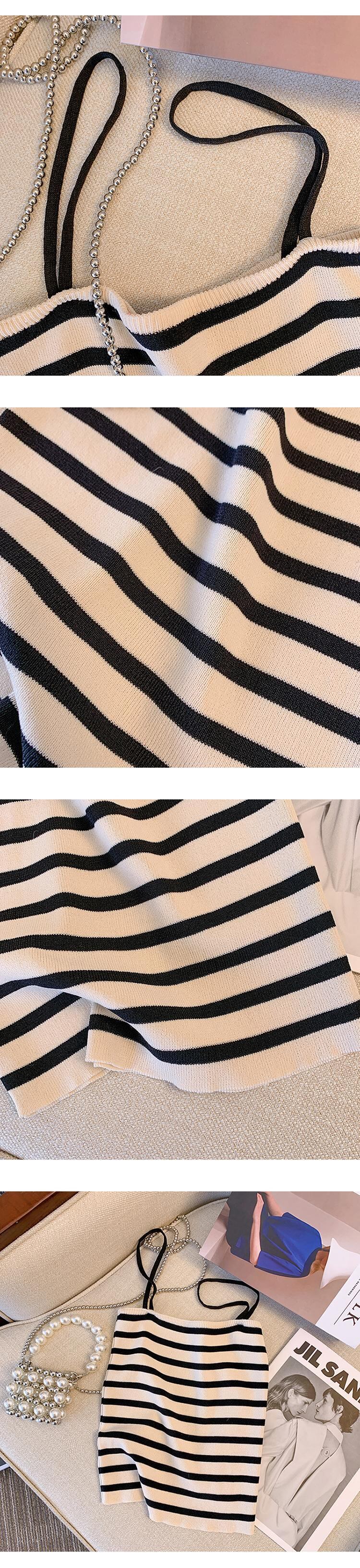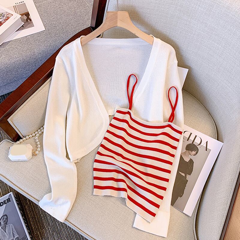 大きいサイズの婦人服 2022 トレンディな女性の夏の新しいファットシスターファッションセーターシャツストライプキャミソール 2 点セット 大きめサイズ サマー 夏物 8884120591529406