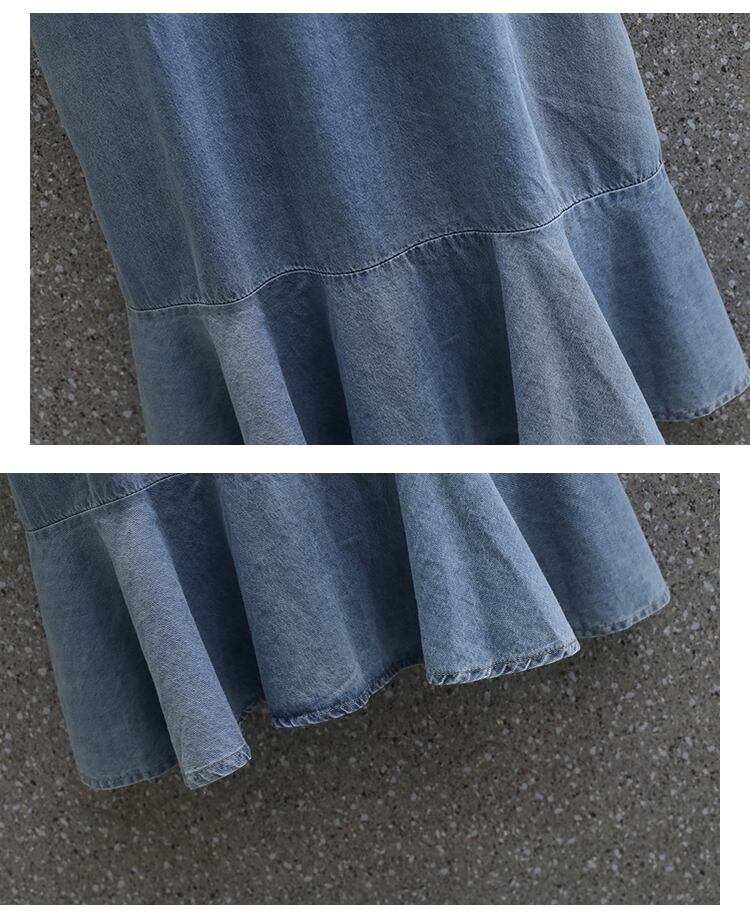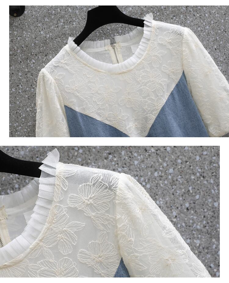 大きいサイズの婦人服 2022 トレンディな女性の夏の新しい太った姉妹のレースのステッチの年齢を減らすルーズで薄いデニムのドレス 大きめサイズ サマー 夏物 8884188717383411