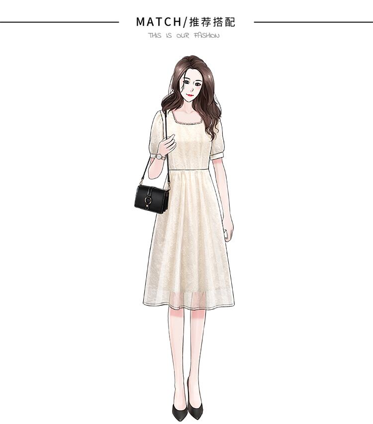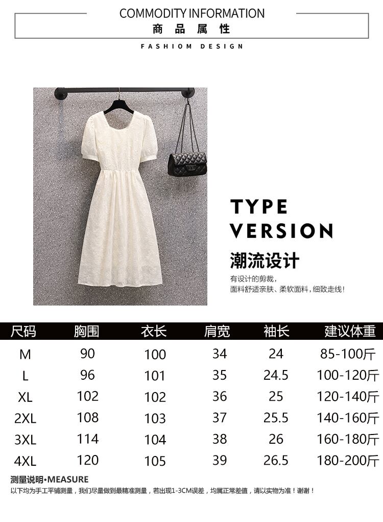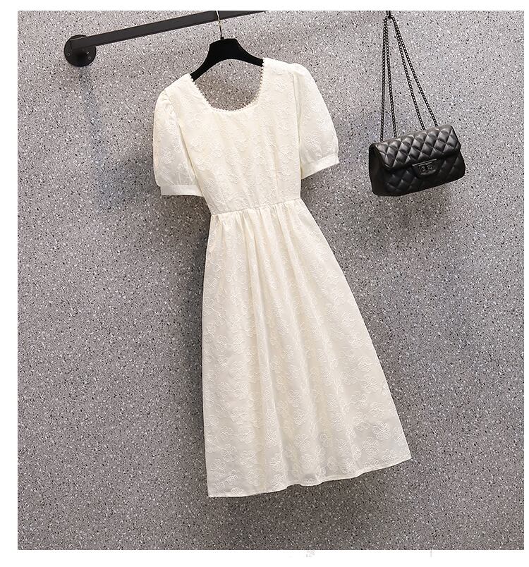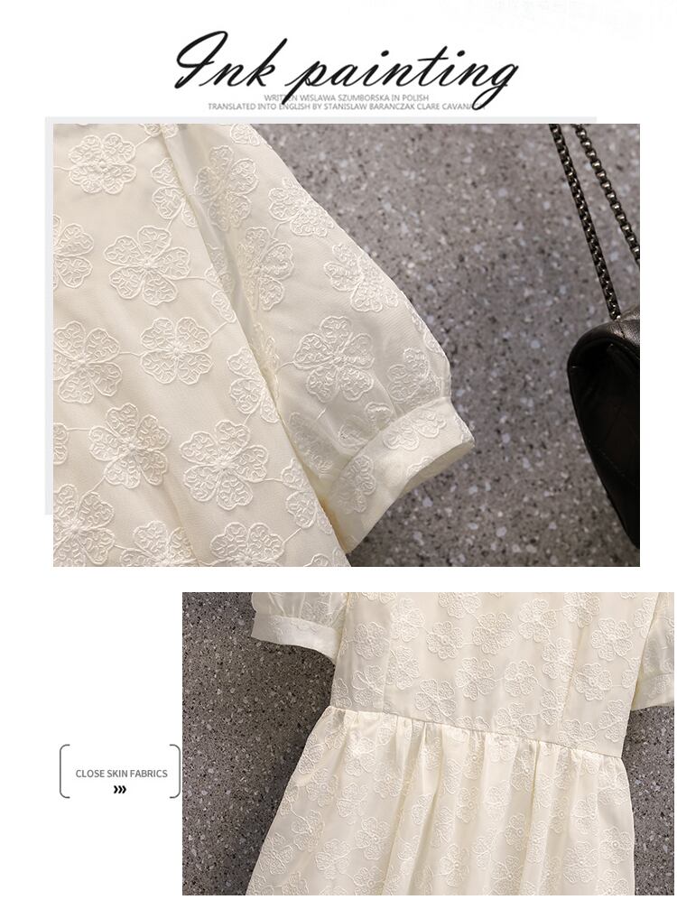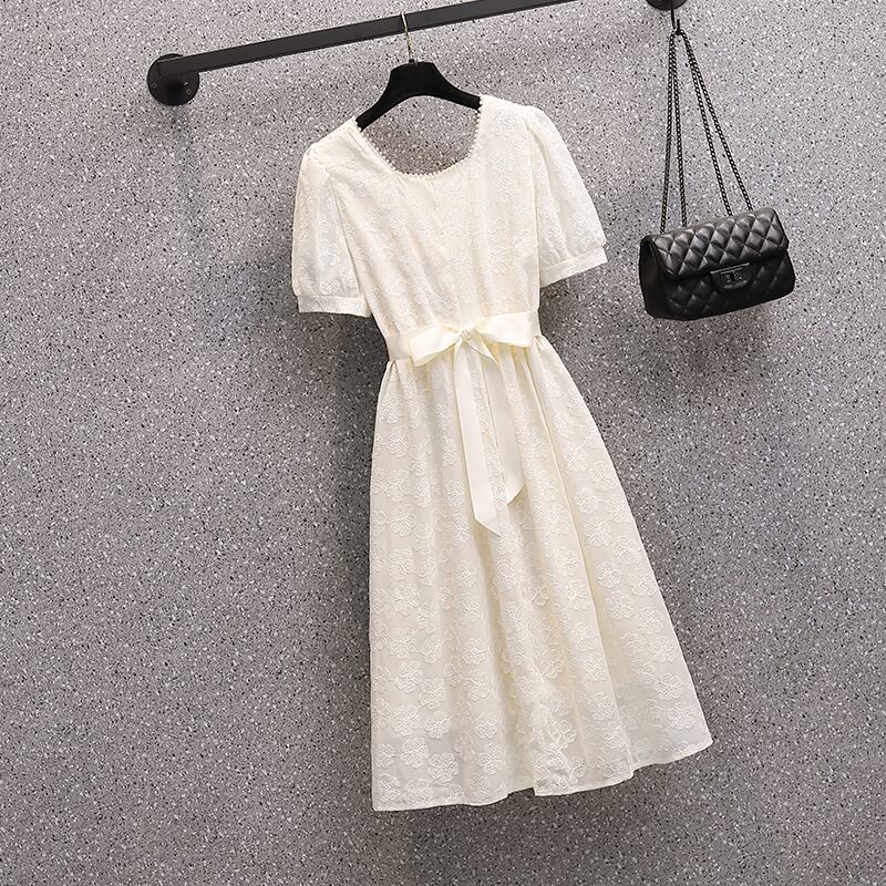 大きいサイズの婦人服 2022 夏の新しい太った姉妹の気質のスクエア カラー パール優しい風ウエスト刺繍ドレス レッド 大きめサイズ サマー 夏物 真珠 スクウェア 8884123466111424