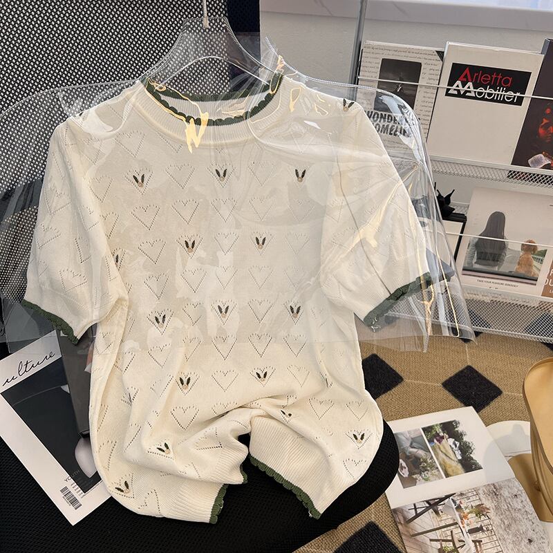 大きいサイズの婦人服 2022 ファットシスター夏の新しいオールマッチニット半袖 tシャツ薄いセクション薄いアイスシルクトップの女性 大きめサイズ サマー 夏物 8884181793502643