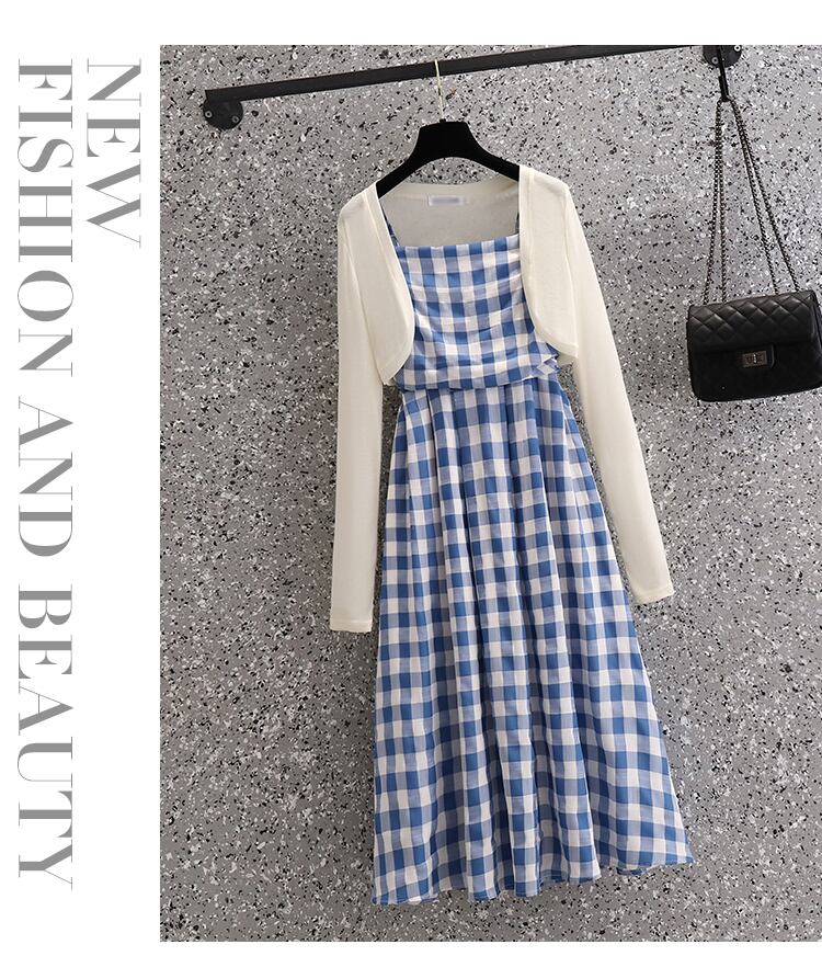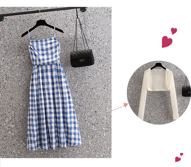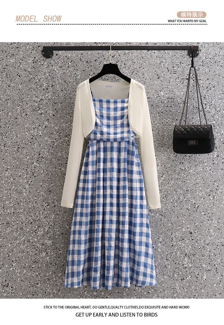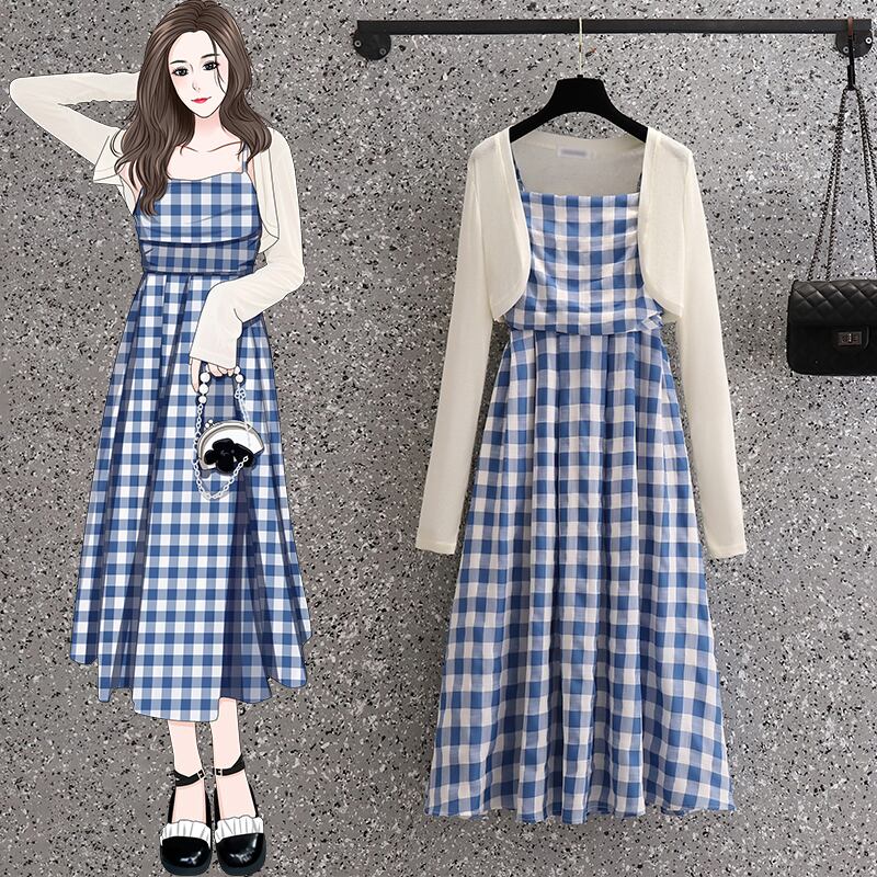 大きいサイズの婦人服 2022 ファットシスター夏の新しい気質の肉を覆う格子縞のドレス日焼け止めカーディガンの女性のツーピースのスーツ 大きめサイズ サマー 夏物 8884125699213871
