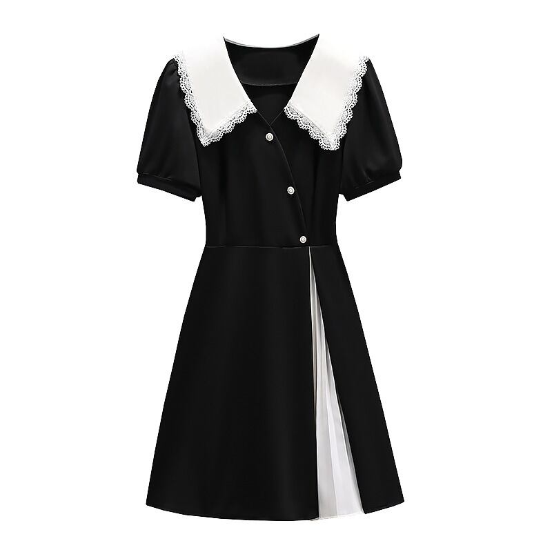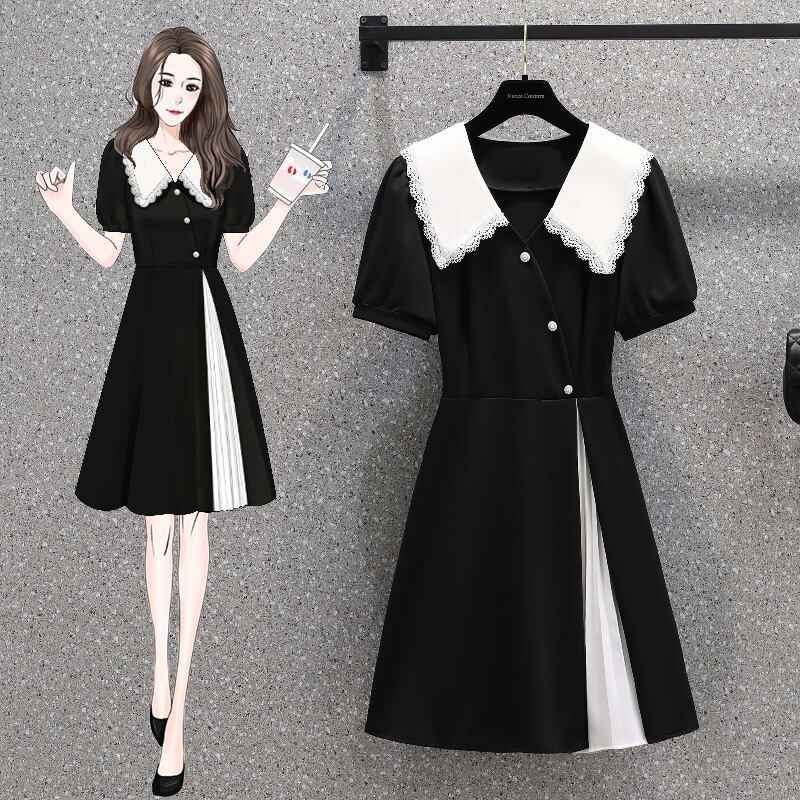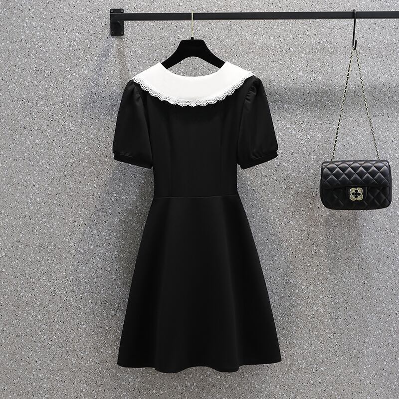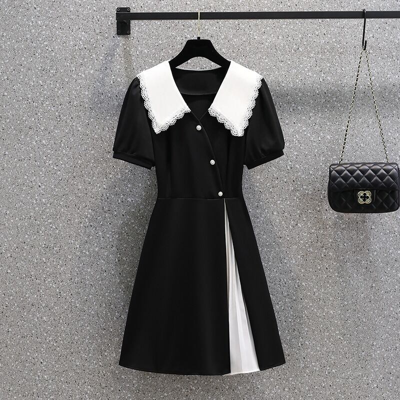 大きいサイズ 2022 夏の婦人服デザインセンス新しい人形の襟ウエスト無地気質痩身ベリーカバードレス 大きめサイズ サマー 夏物 ソリッドカラー 8884158933435915