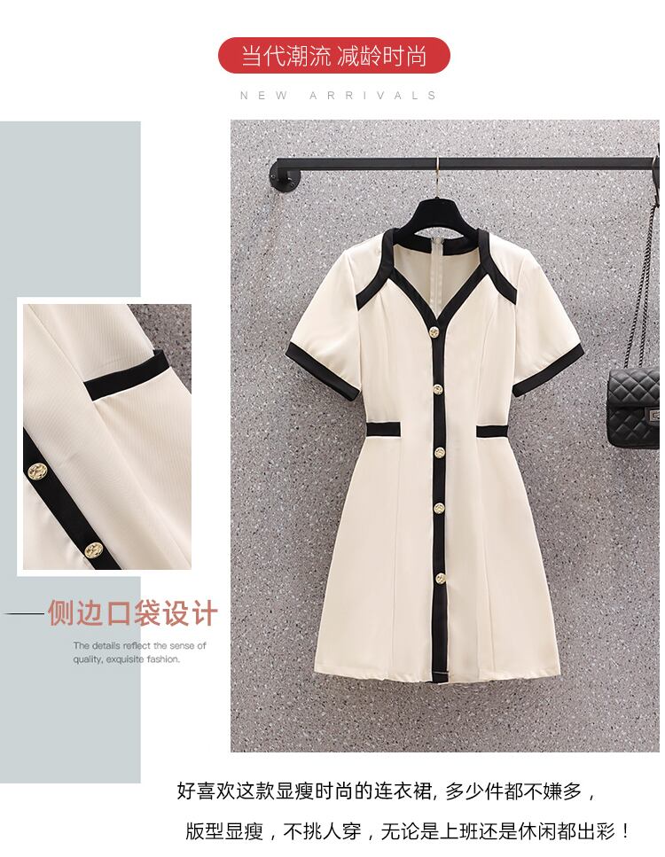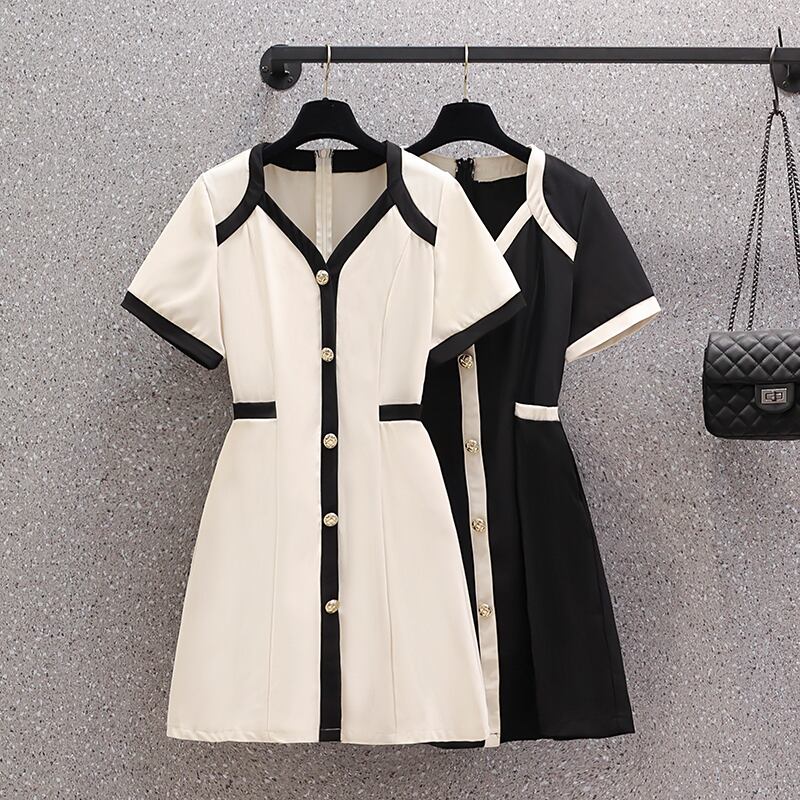 大きいサイズの婦人服 2022 夏の新しい太った姉妹ファッション デザイン フレンチ カジュアル ウエスト スリム ドレス 大きめサイズ サマー 夏物 8884181241441676
